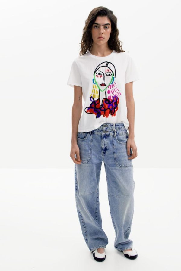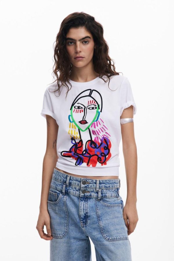 Short-sleeved T-shirt with a round neck and Arty female figure print