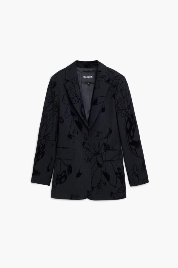 Regular-fit blazer with front pockets in a solid color featuring velvet flocked details creating an Arty-inspired print.