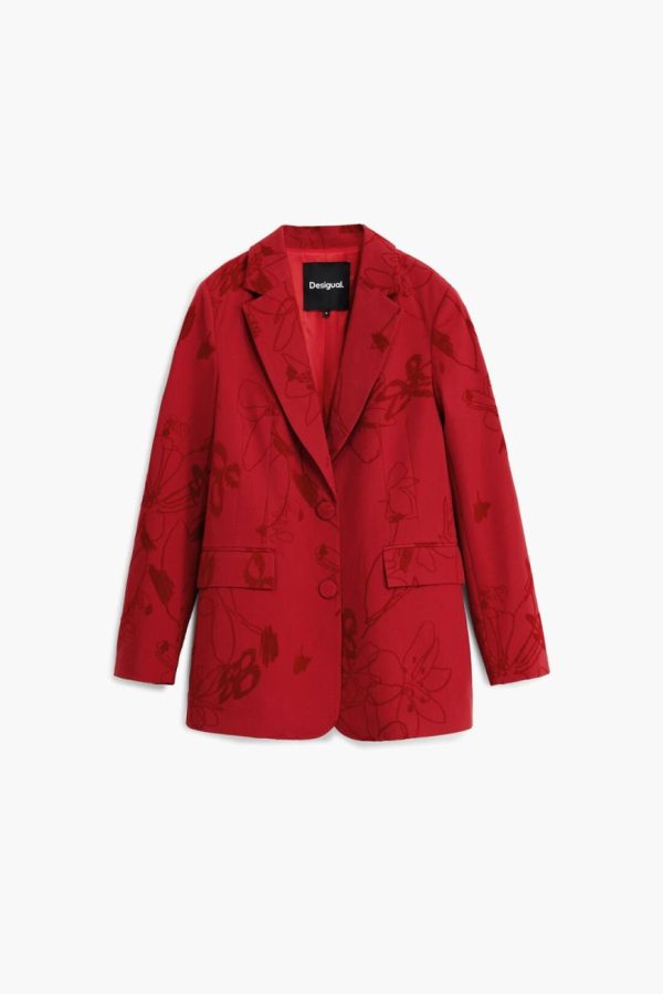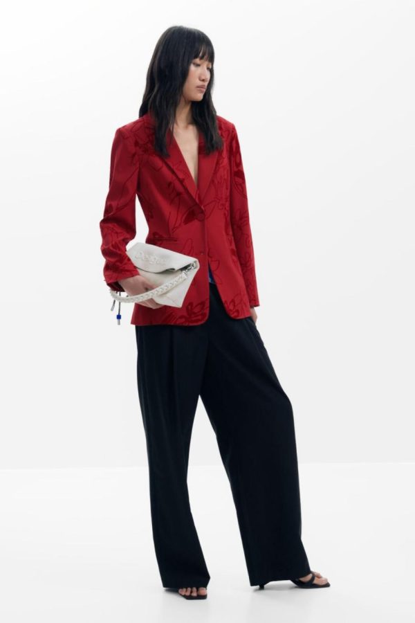 Regular-fit blazer with front pockets in solid color featuring velvet flocked details creating an Arty-inspired print.