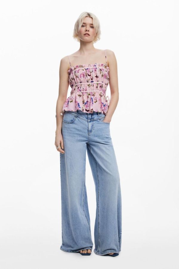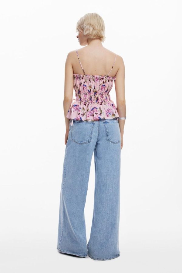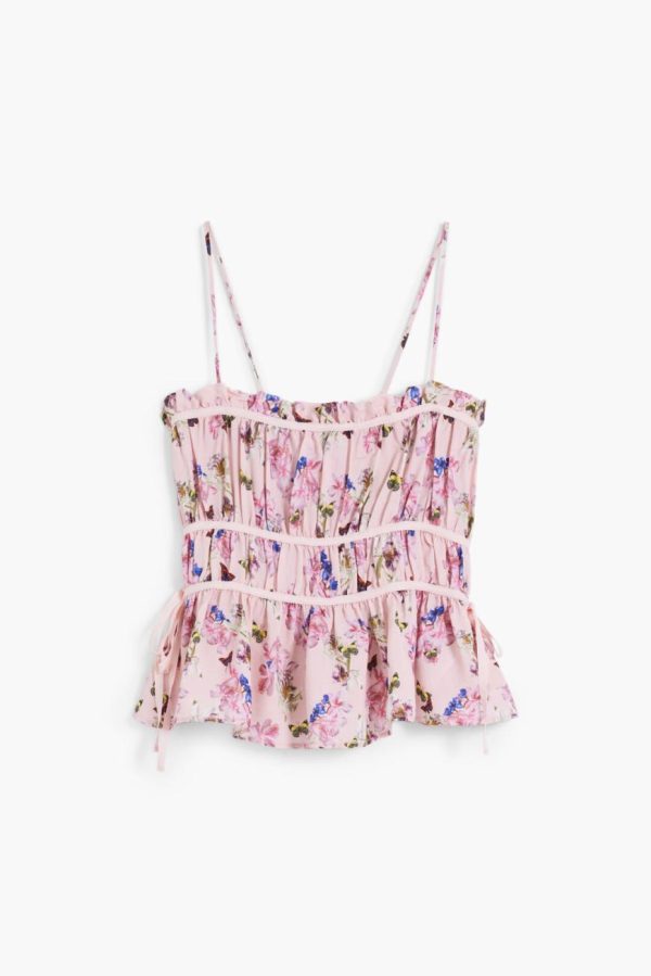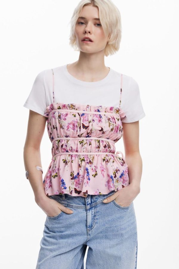 Elevate your style with this stunning blouse featuring chic horizontal panels, delicate thin straps, and an exquisite butterfly print crafted by the legendary Monsieur Christian Lacroix.
