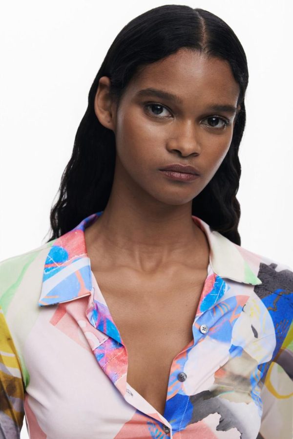 Desigual Collage Buttoned T-shirt Materialfinishes | Women T-Shirts