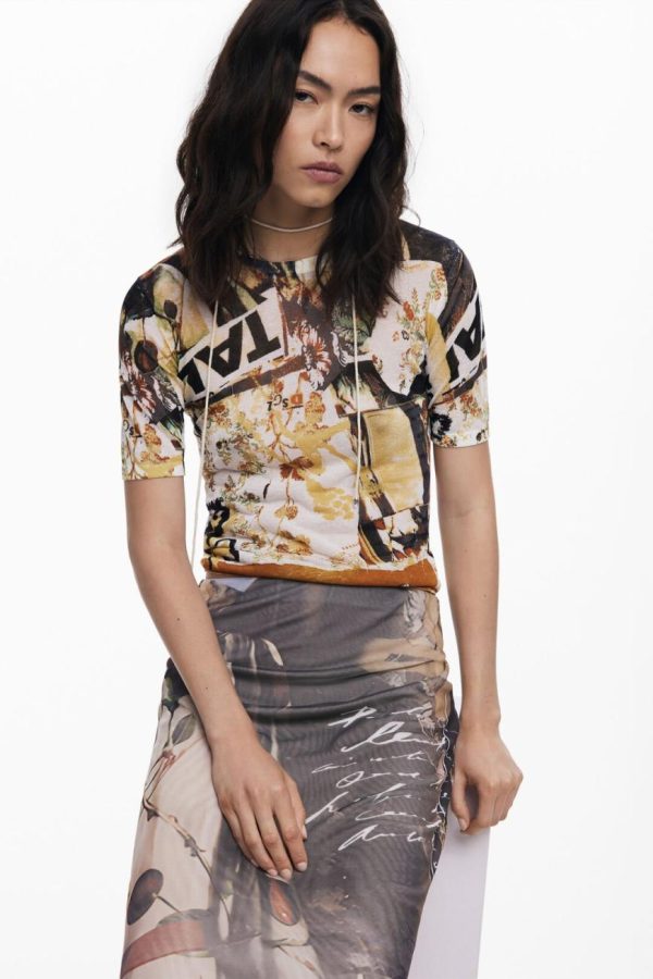 Desigual Collage Knit T-shirt Materialfinishes | Women T-Shirts