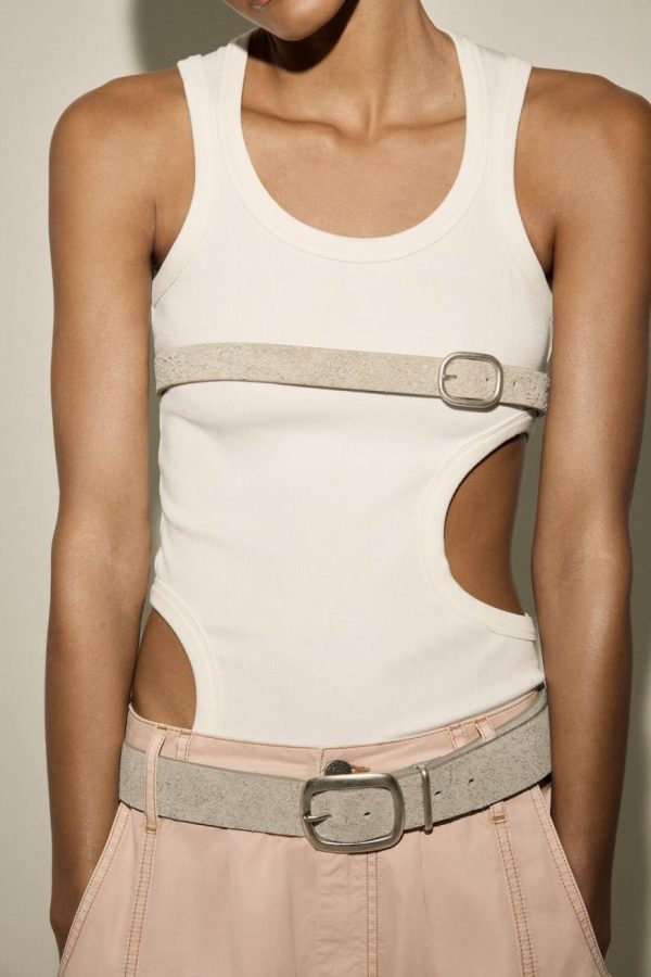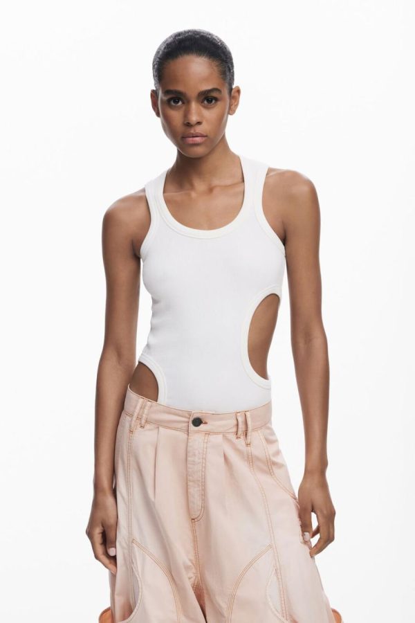 Desigual Cut-out Sleeveless T-shirt White | Women T-Shirts