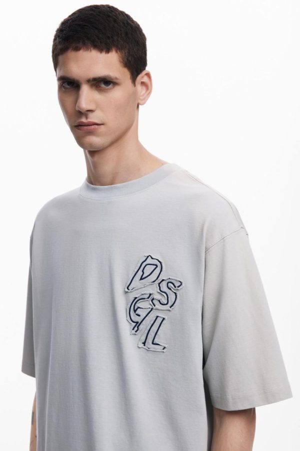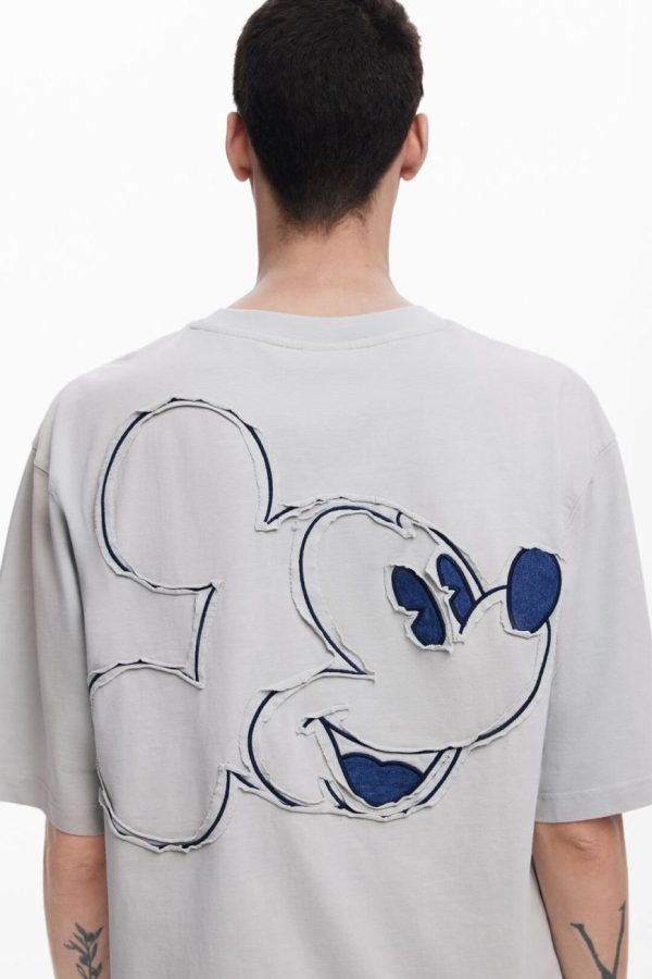 Short-sleeve T-shirt with a large patchwork image of Mickey Mouse™ on the back and patch letters recreating the logo on the front.