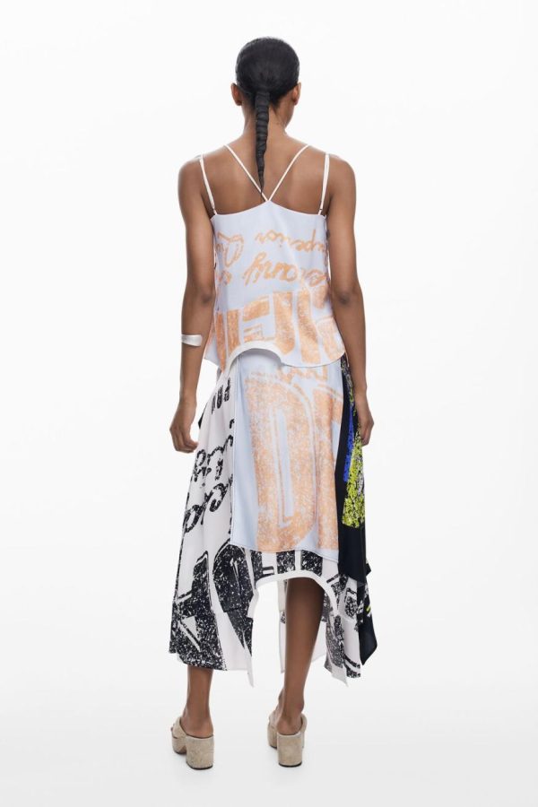Tank top with double straps, crossed at the back, and lettering-style print in contrasting color