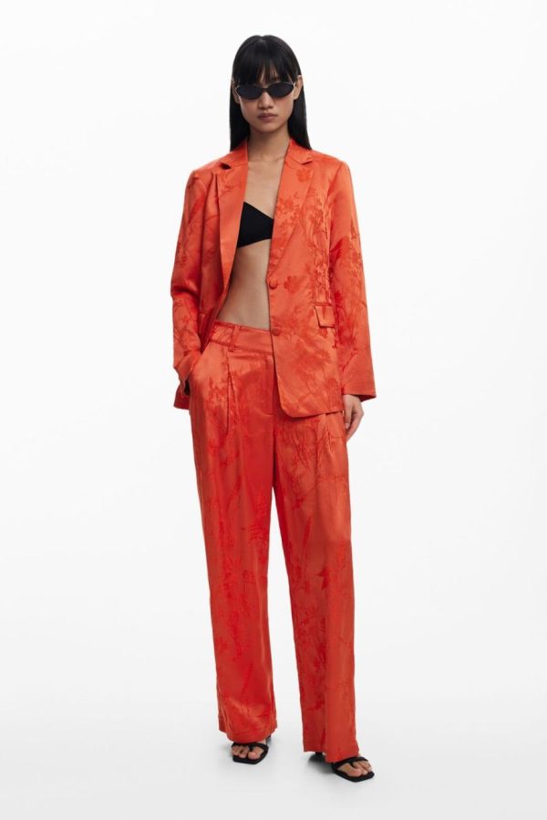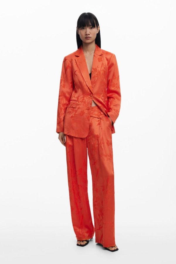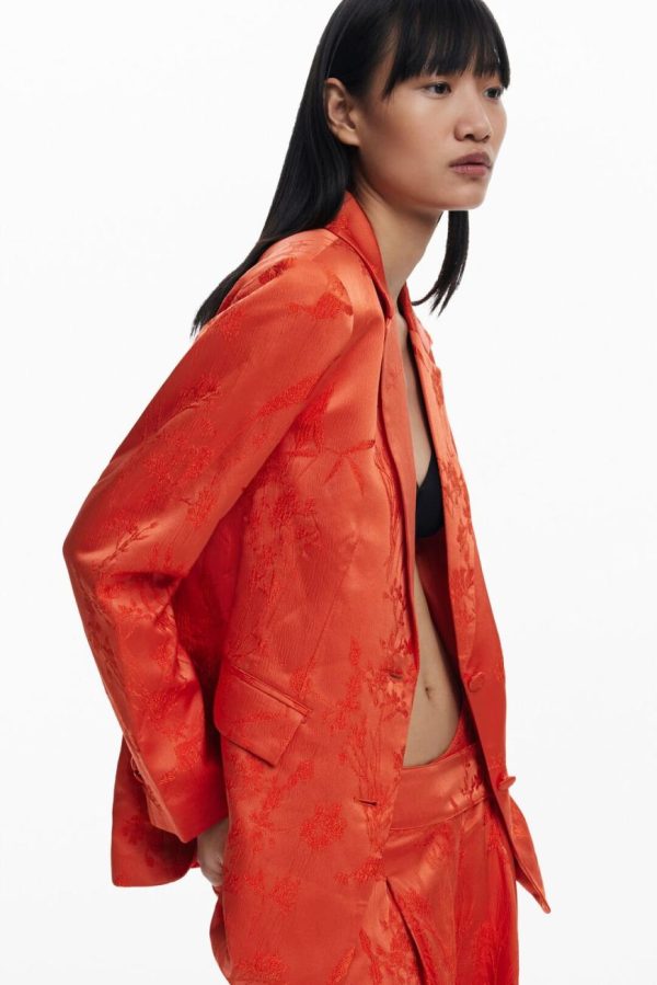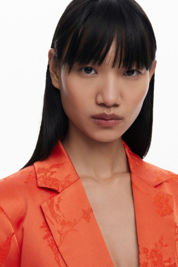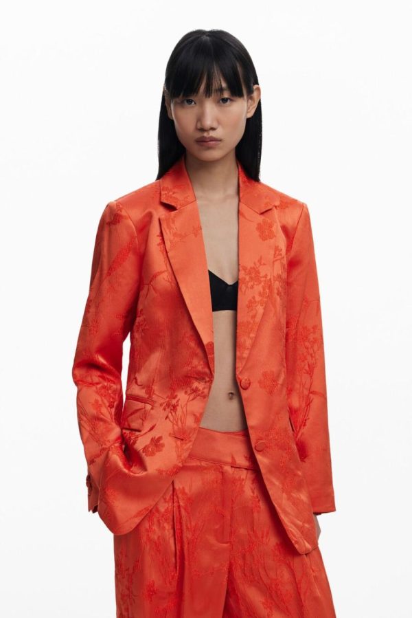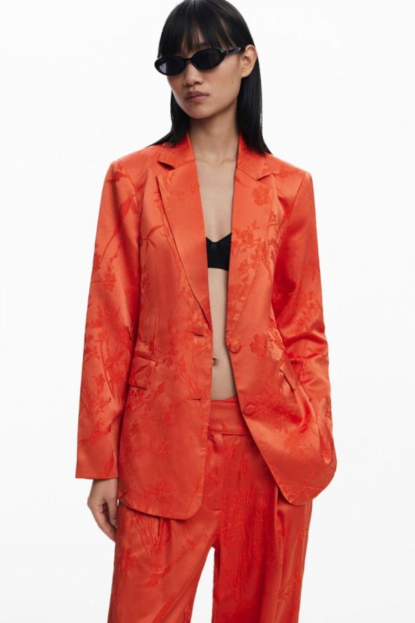 Elevate your professional wardrobe with this beautifully tailored blazer-style jacket featuring sophisticated front pockets and exquisite embroidery accents. Crafted in a versatile solid color that pairs effortlessly with your favorite pieces.