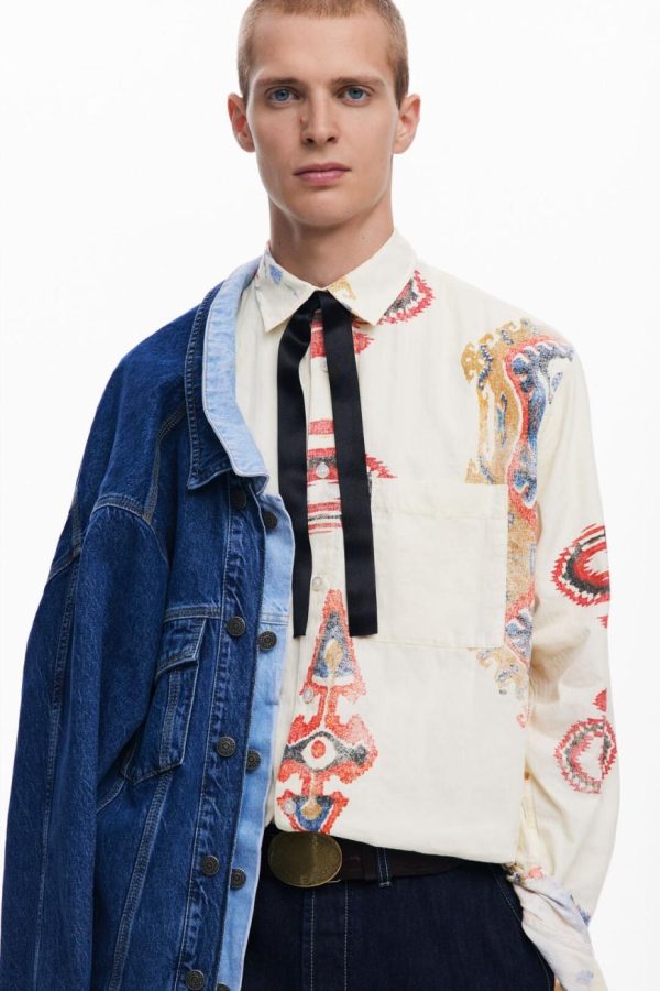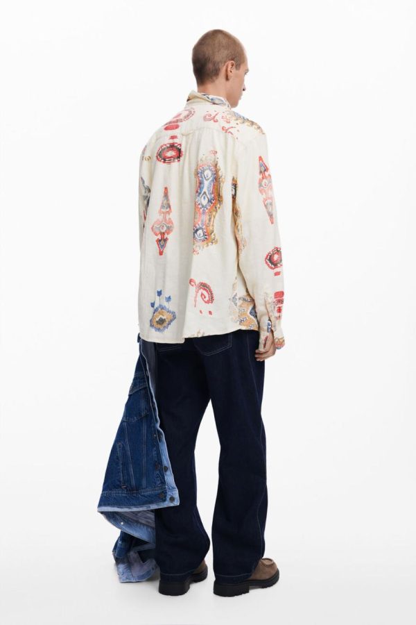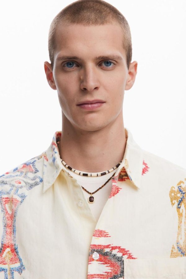 Regular fit long sleeve shirt, front pocket with ethnic-inspired print.