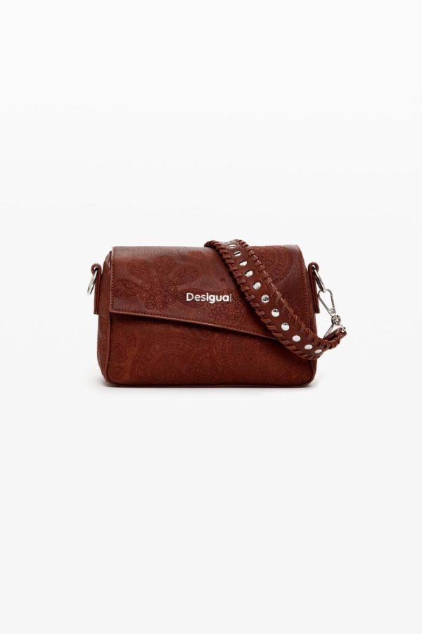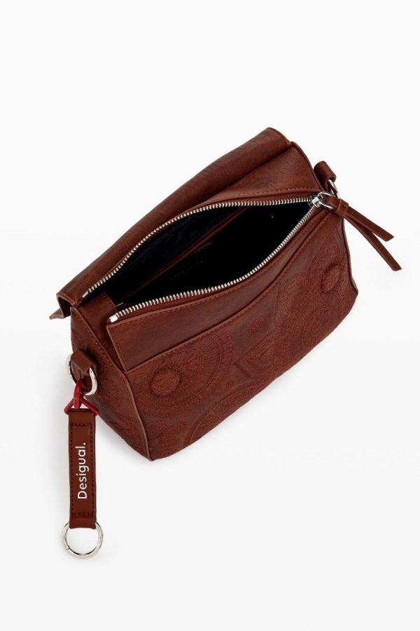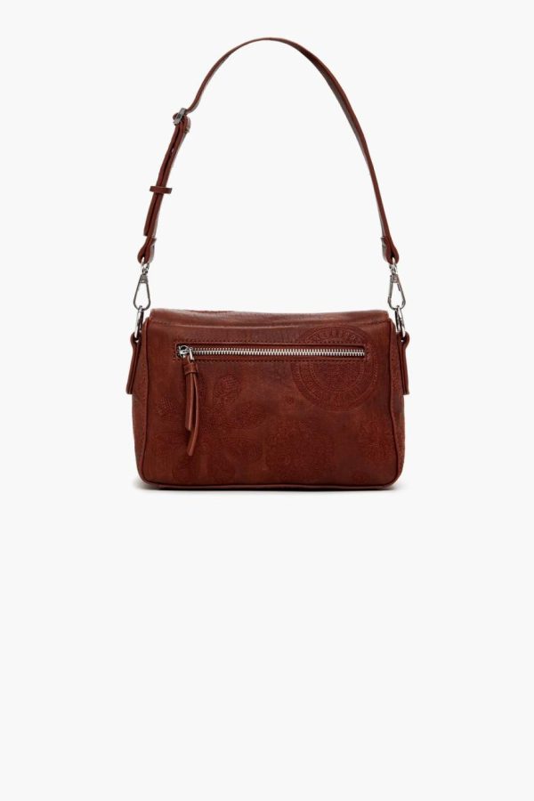 Stylish medium crossbody bag featuring premium faux leather with elegant tone-on-tone floral embroidery, designed with multiple organized compartments and convenient pockets for everyday essentials.