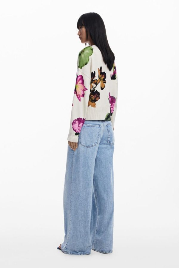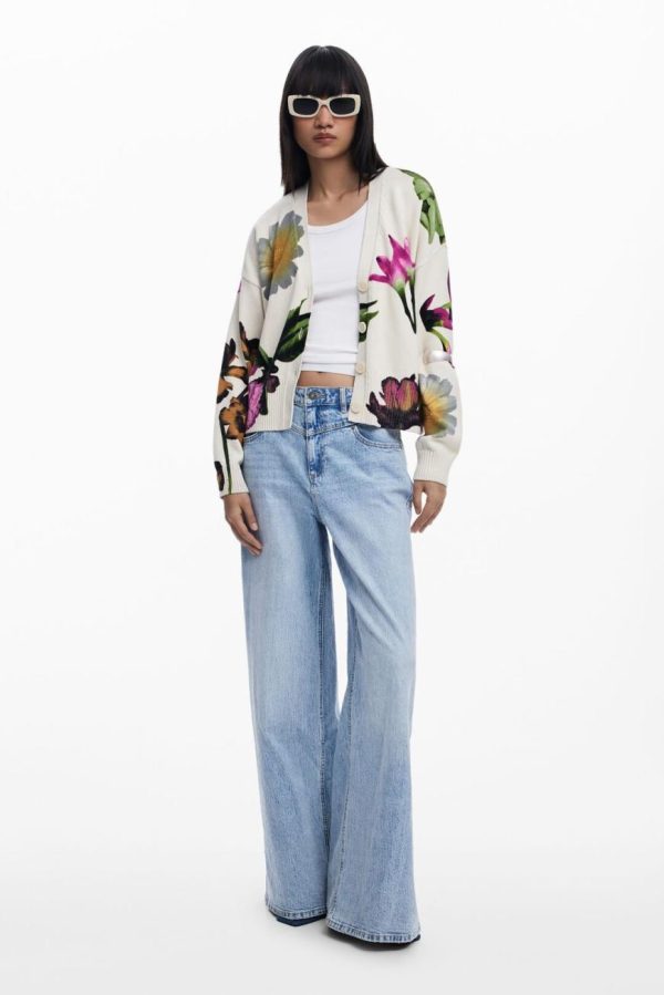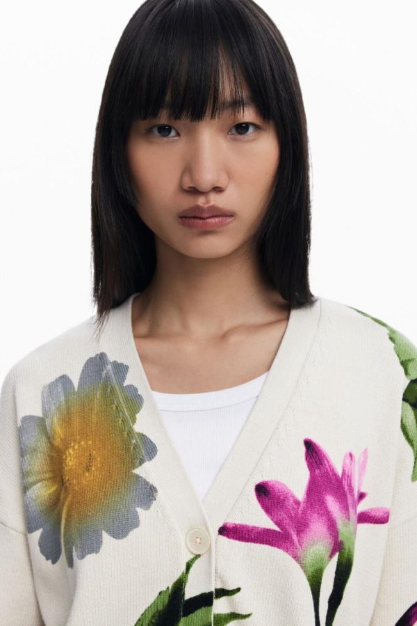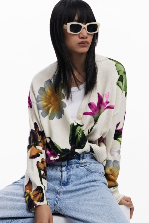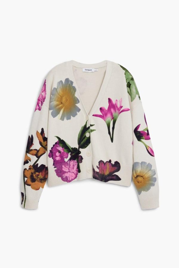 Elevate your casual wardrobe with this beautifully knit cardigan featuring elegant long sleeves, a flattering V-neck design, vibrant floral print, and secure button closure for effortless style