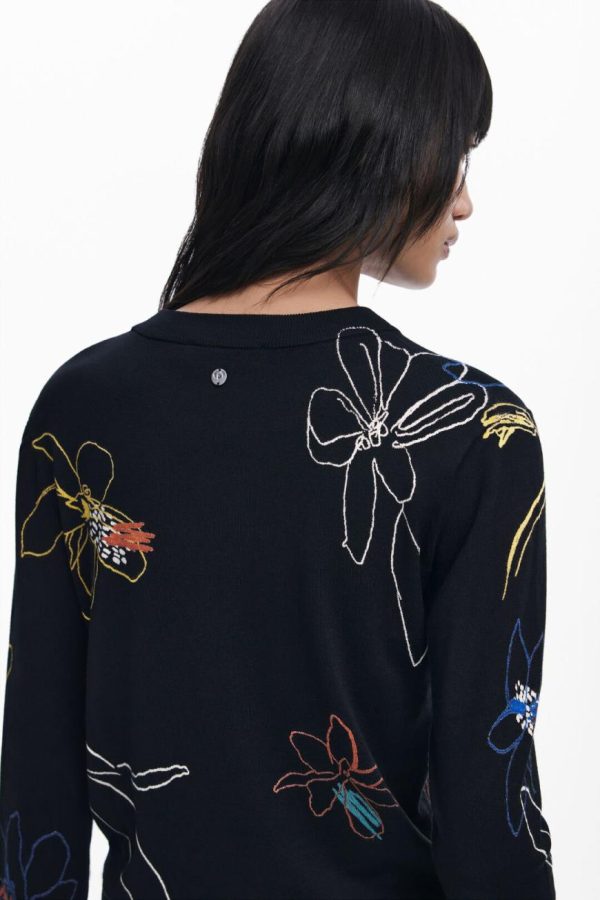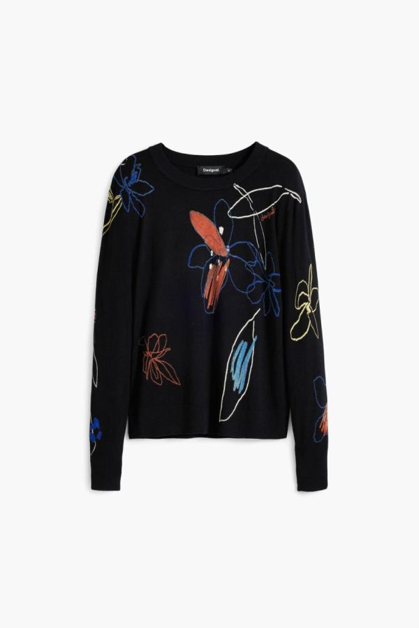 Discover this beautifully lightweight sweater featuring a versatile regular fit, classic round neckline, and elegant long sleeves adorned with artistic floral stroke detailing.