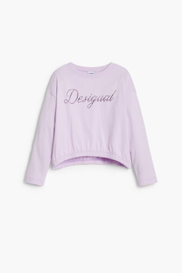 Stylish long-sleeve cotton tee featuring a comfortable round neckline, crafted in a vibrant solid color with dazzling strass logo detailing that adds a touch of sparkle to any outfit.
