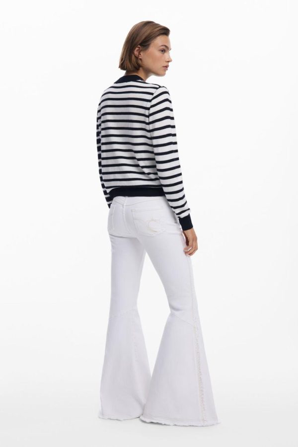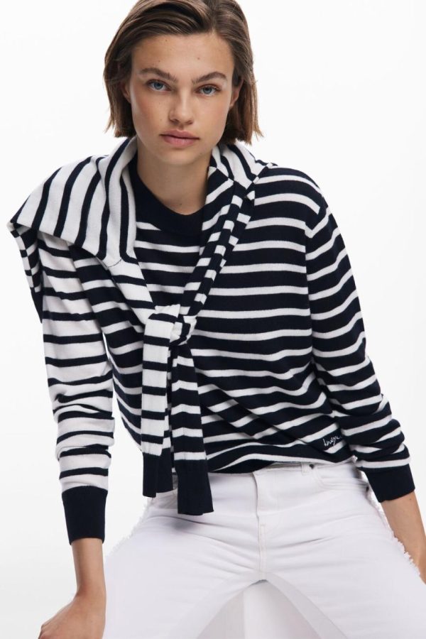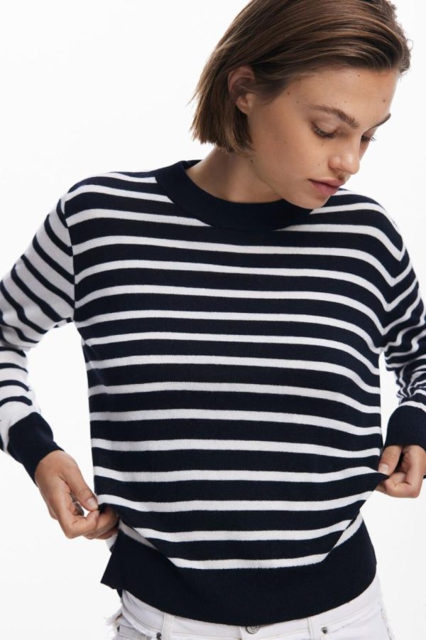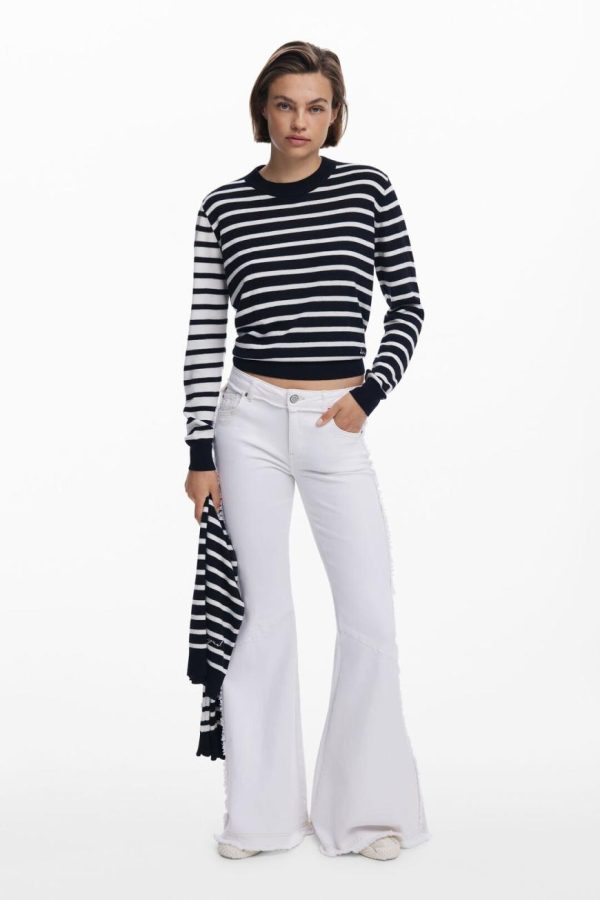 Desigual Horizontal Striped Sweater White | Women Sweaters
