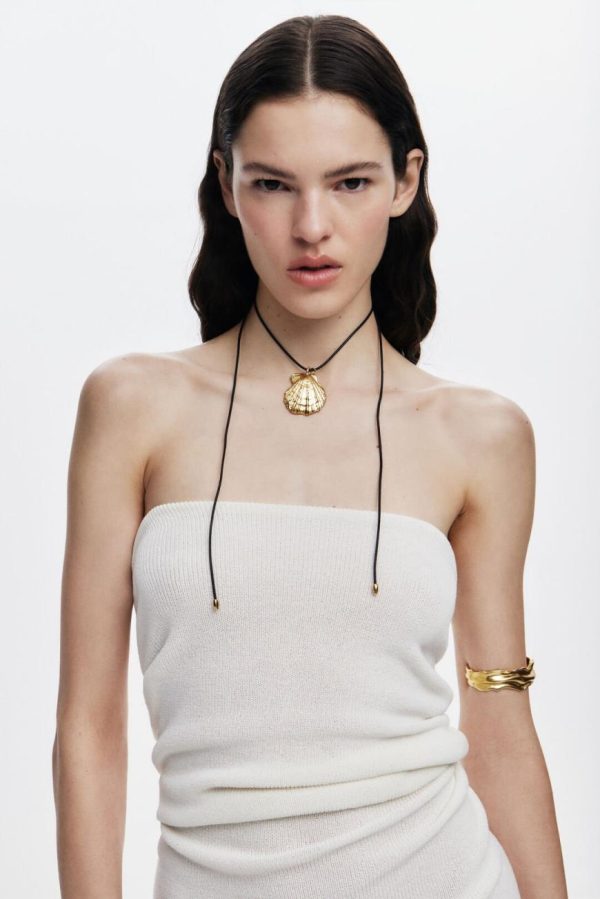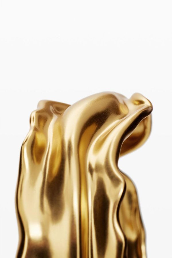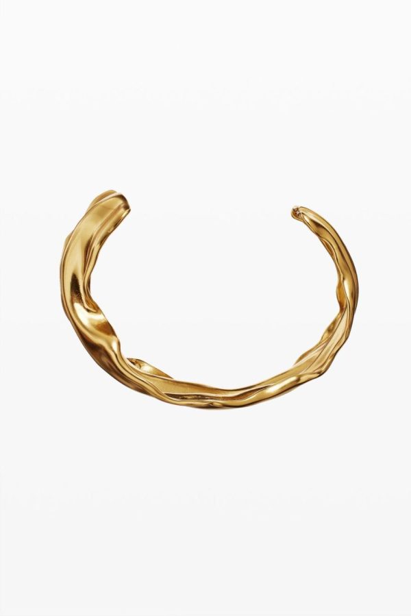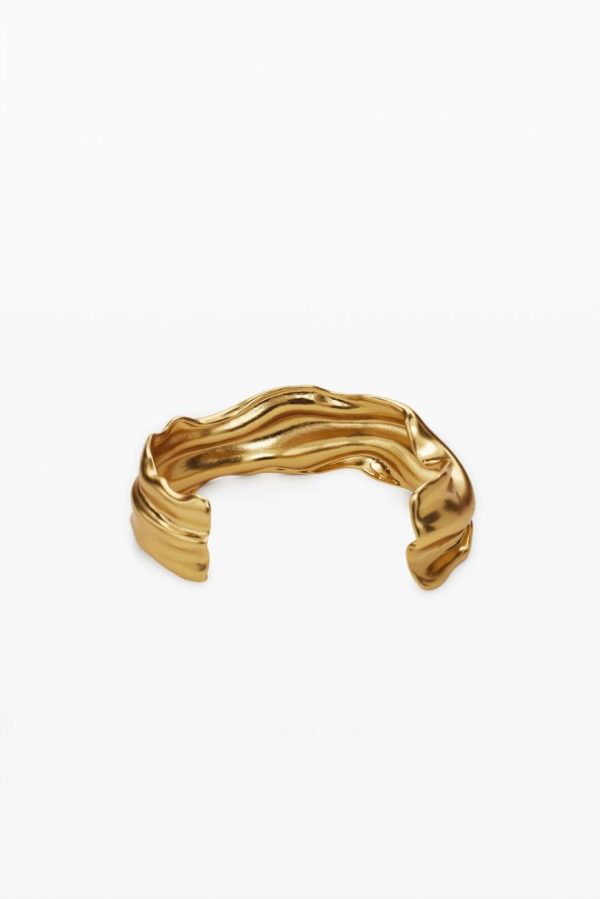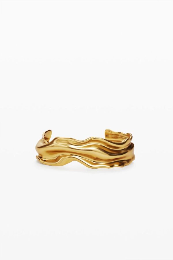 Thin rigid bracelet with irregular shapes plated in 1st Law gold of 3 micro inches, with a snap closure and pearl details. Zalio x Desigual collection; designed by Gala Meyer.