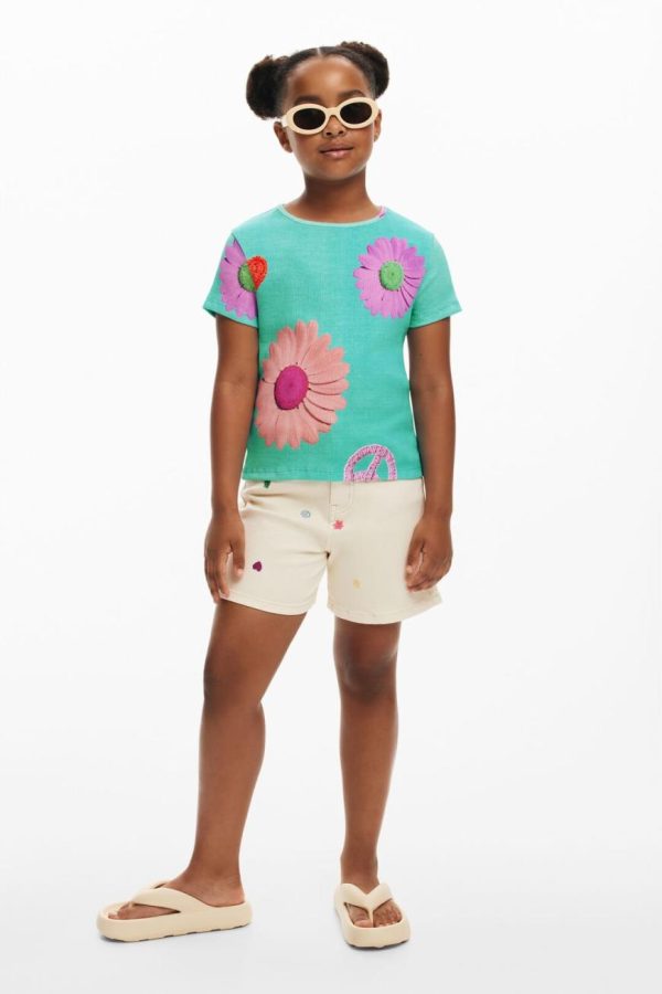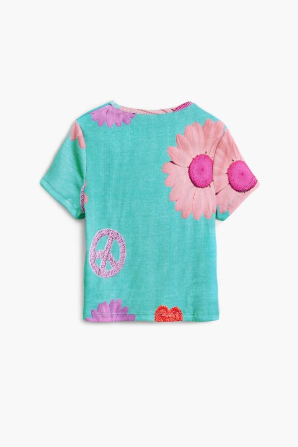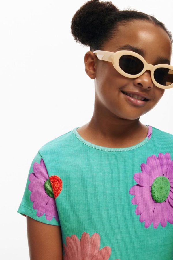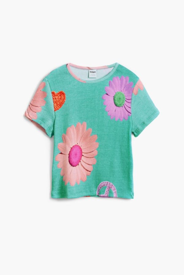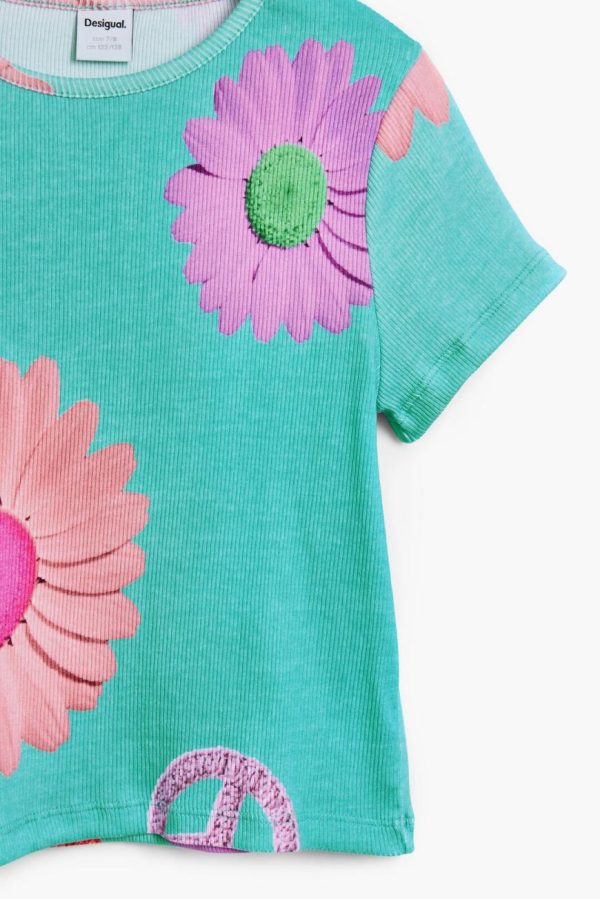 Stylish ribbed short-sleeve T-shirt featuring a vibrant floral print that kids will love