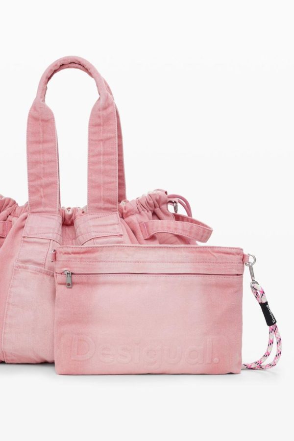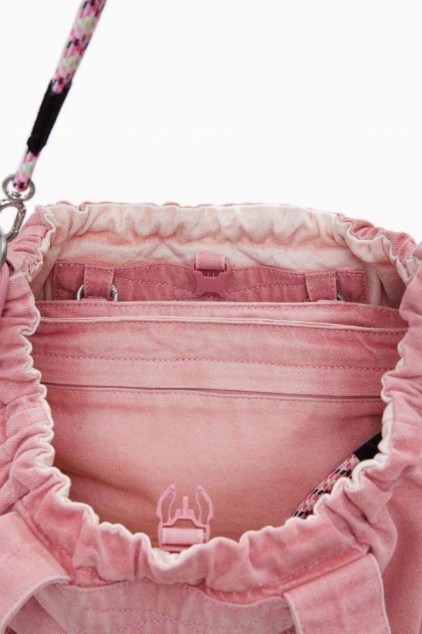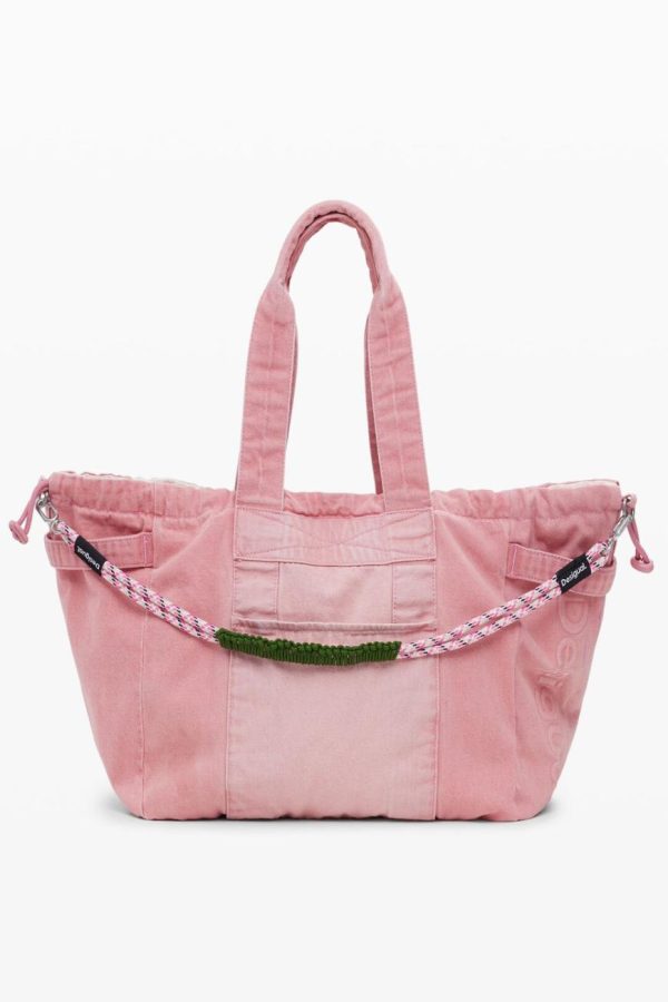Large shopper-style bag with multiple pockets, interchangeable straps, interior compartments, and a screen-printed logo on the side.