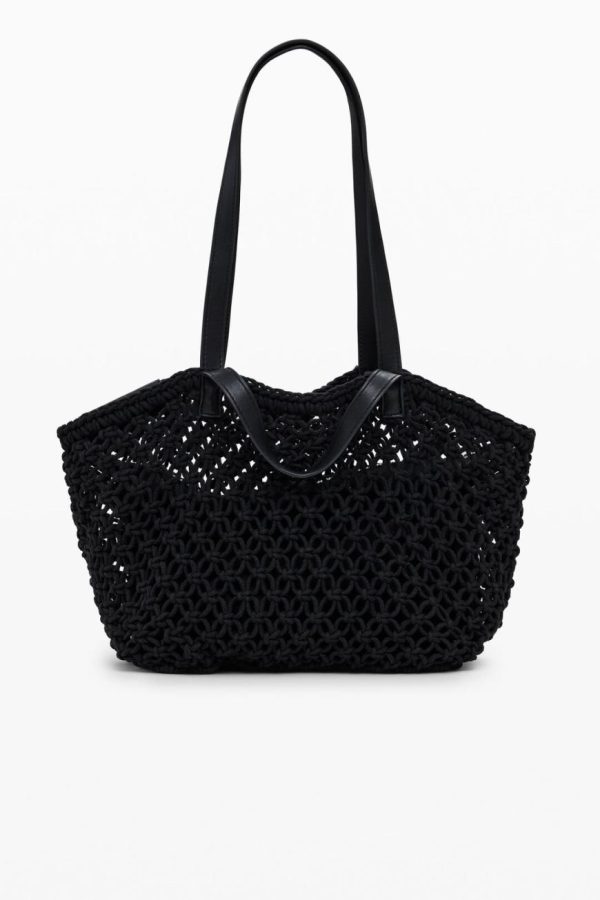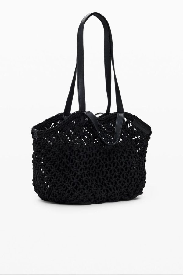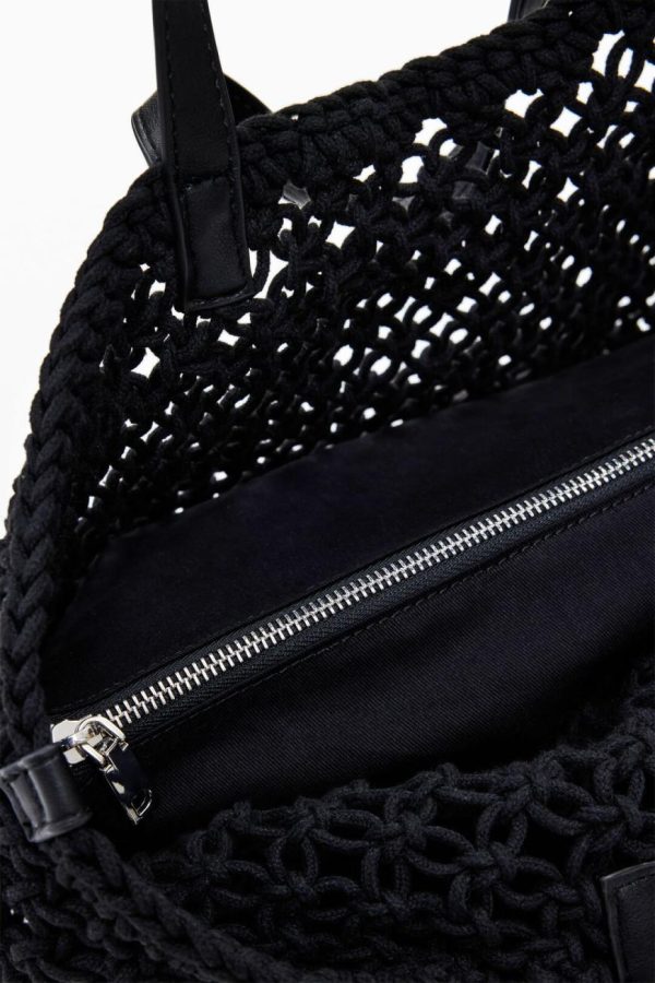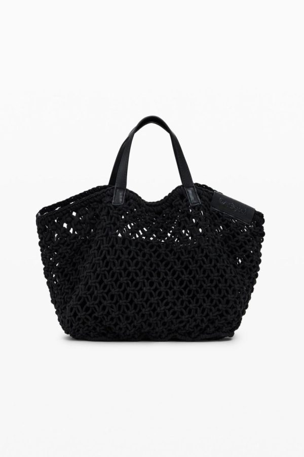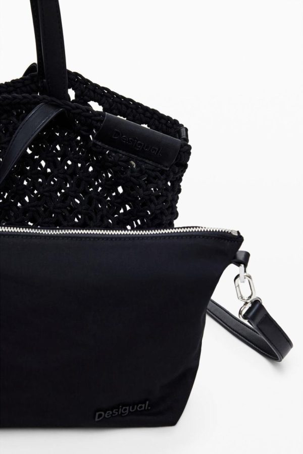 Large bag made of natural fabric with braided rope, removable inner bag with embossed logo, and double handle.
