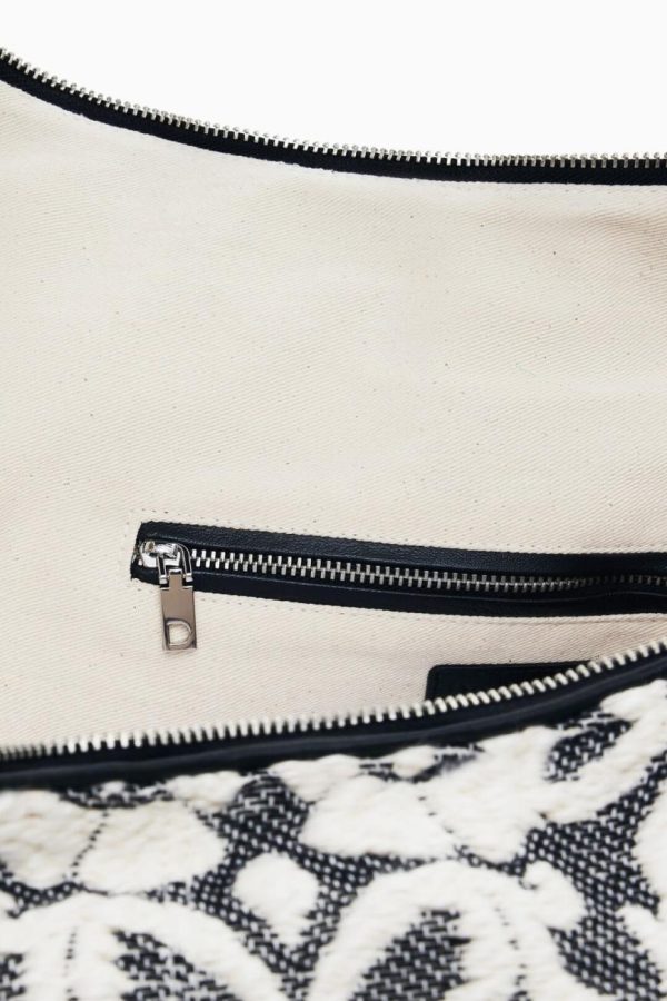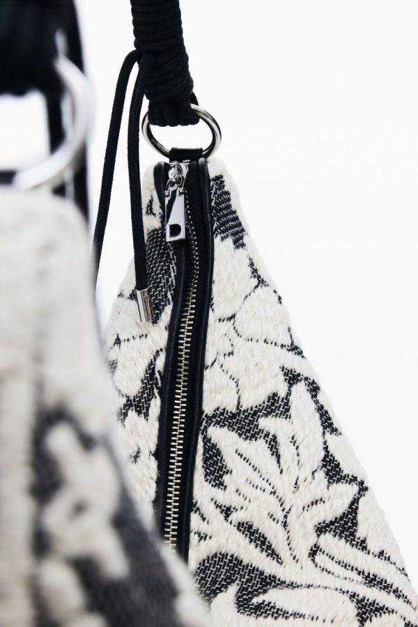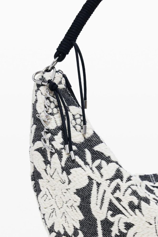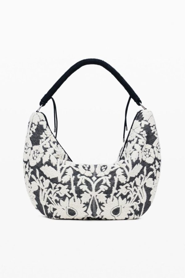 Large-format hobo shoulder bag with braided handle, zipper closure, and floral devoré print.