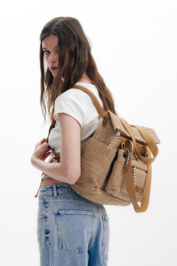 Desigual Large Voyager Raffia Backpack Beige | Women Backpacks