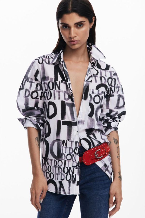 Desigual Lettering Shirt White | Women Shirts And Blouses