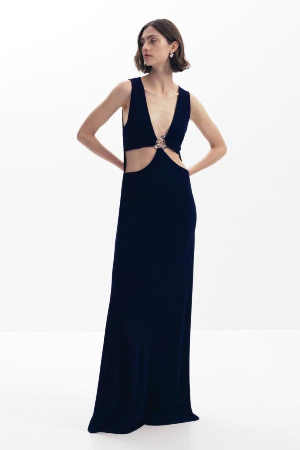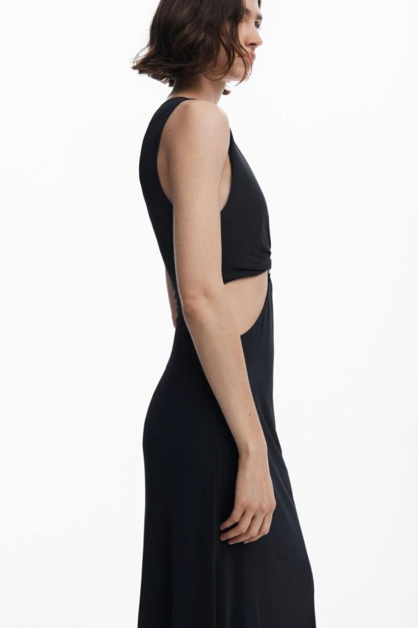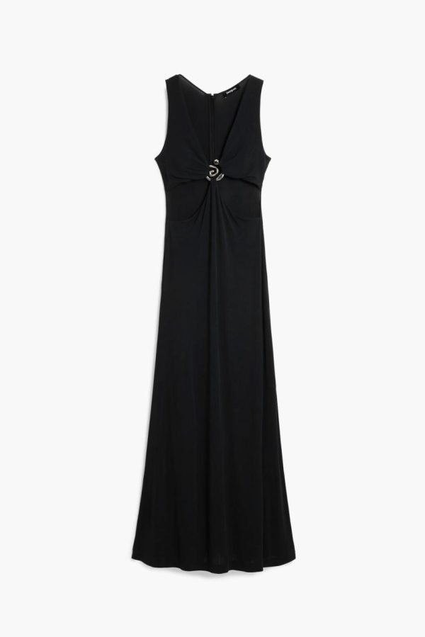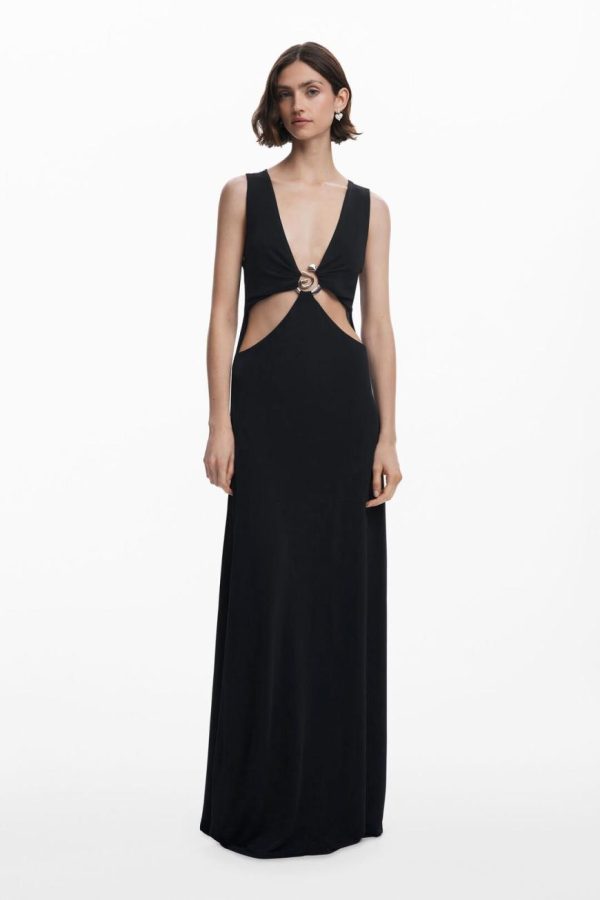 Desigual Long Dress With Metallic Appliqué Black | Women Dresses And Jumpsuits