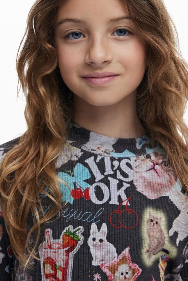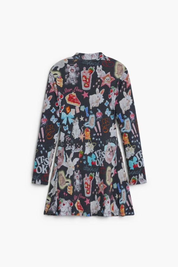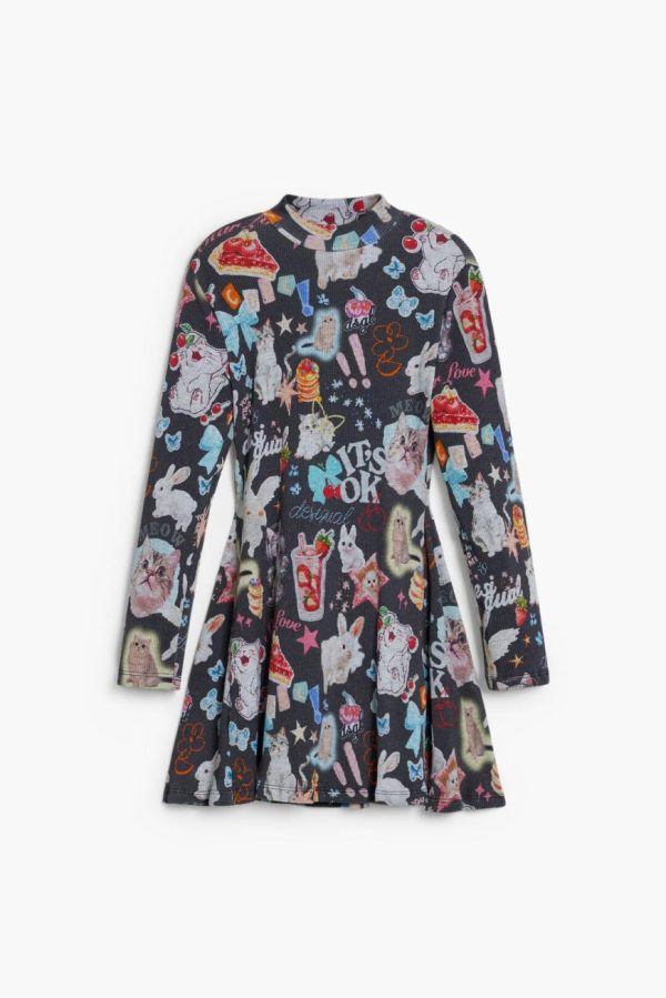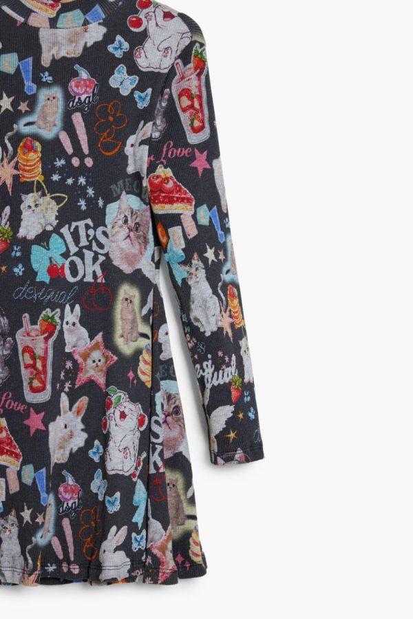 Desigual Long Sleeve Cat Skater Dress Pink | Kids Dresses