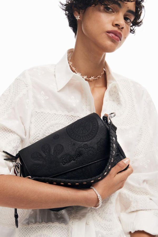 Desigual M Bag With Embroidered Flowers Black | Women Bags
