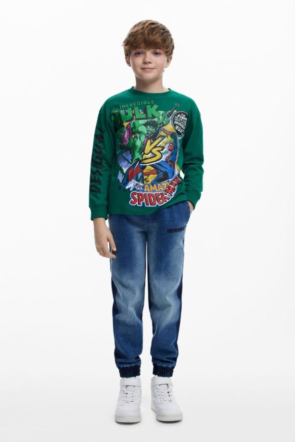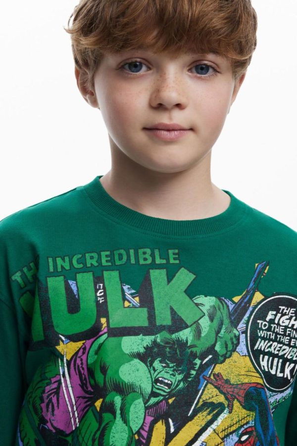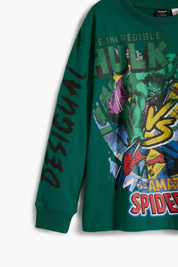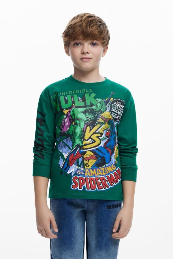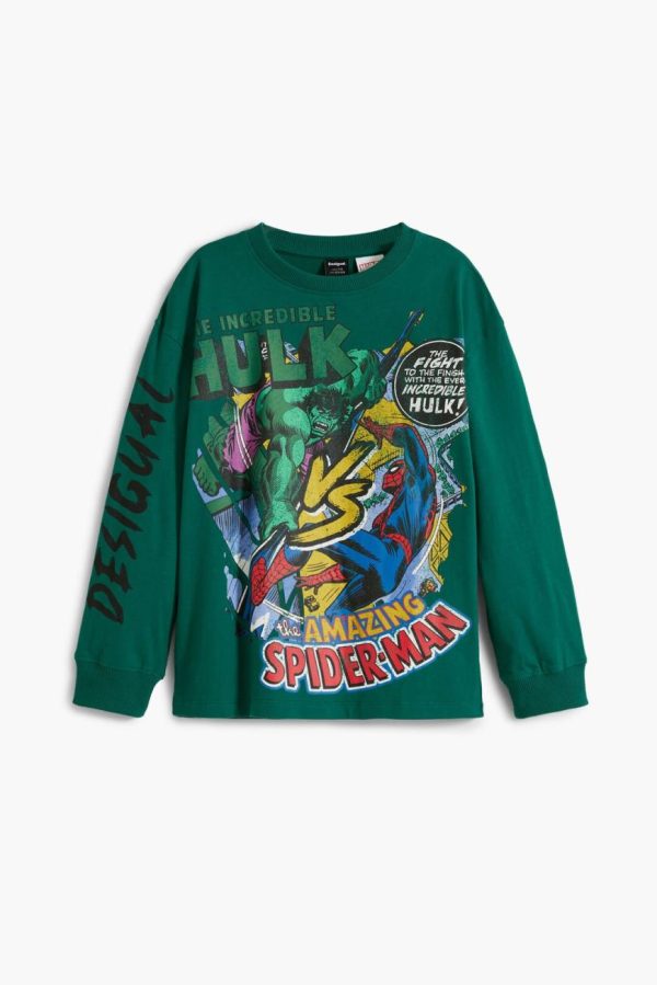 Cotton T-shirt with a round neck and long sleeves, logo detail on the arm and Marvel™ licensed comic print.