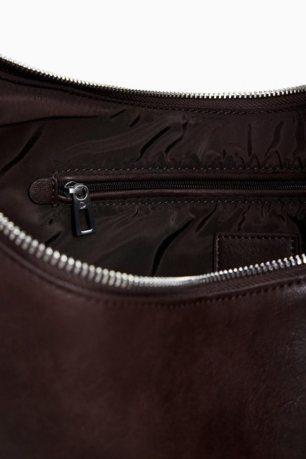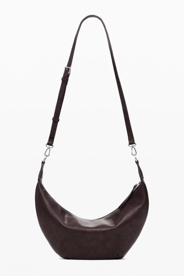 Medium-sized crossbody bag in solid color faux leather fabric, 3D effect logo, interchangeable handles, and zipper closure.