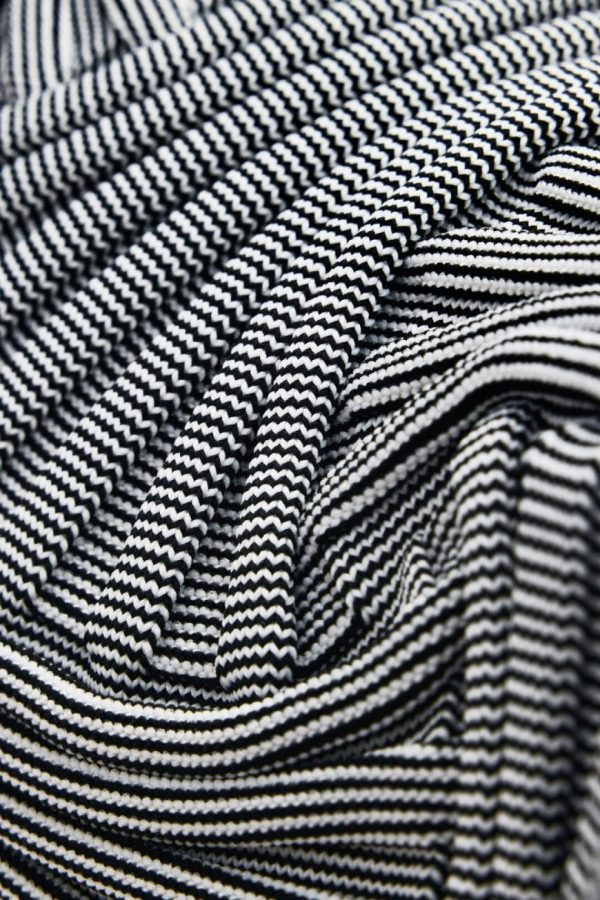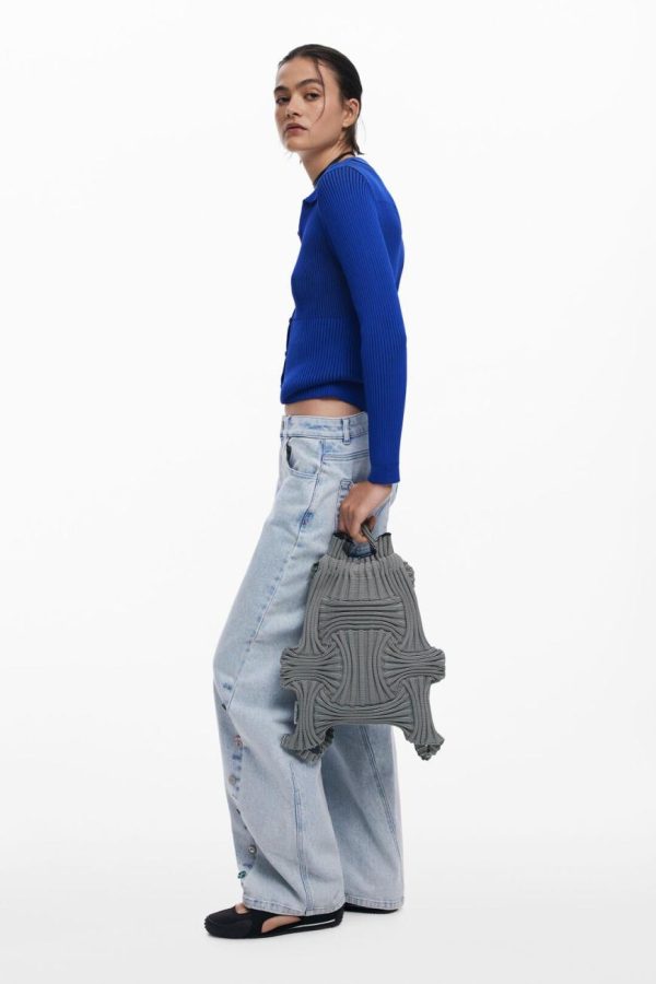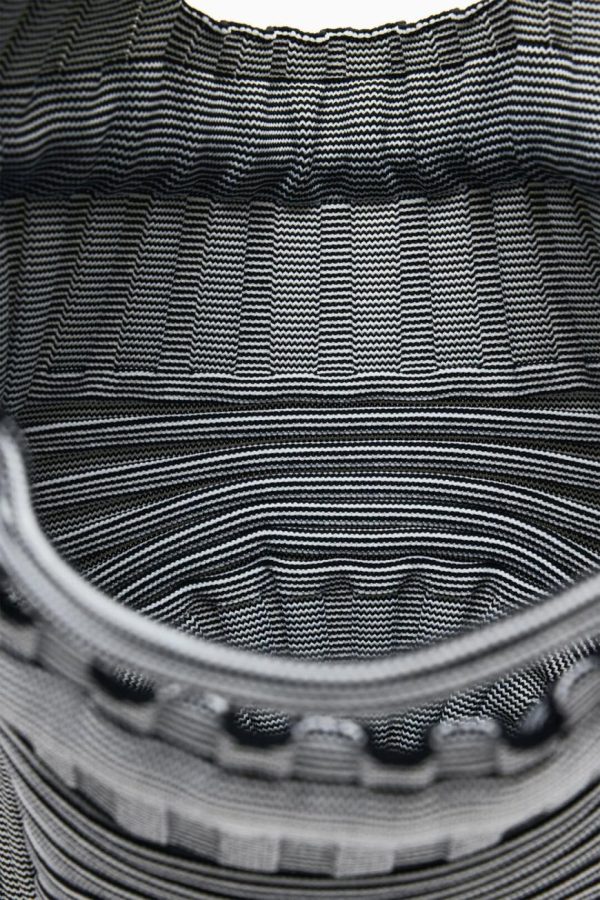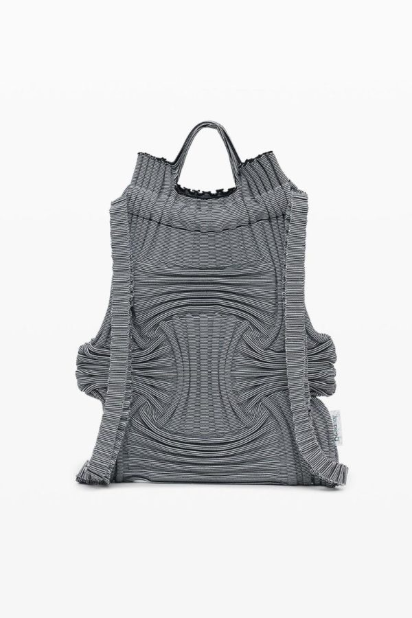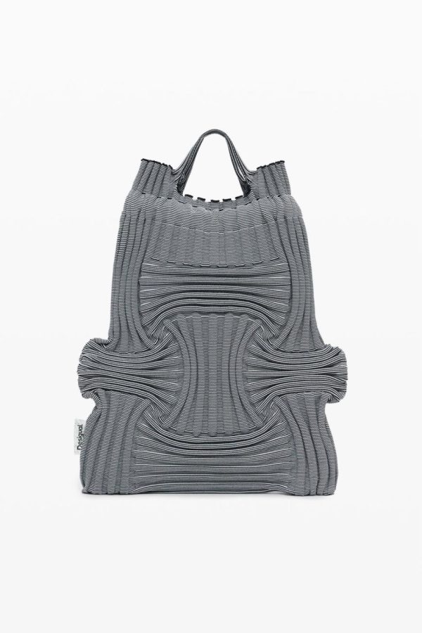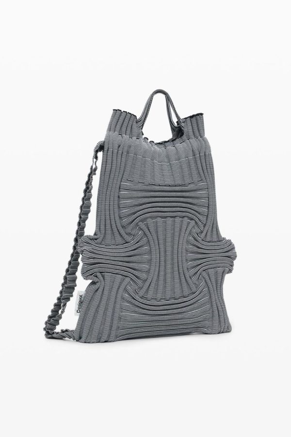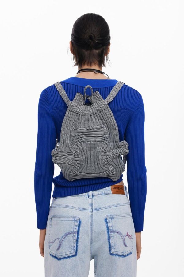 Medium-sized backpack with embossed design and flexible structure, made of highly adaptable stretch knit fabric.
