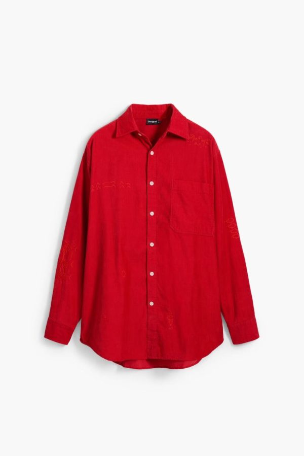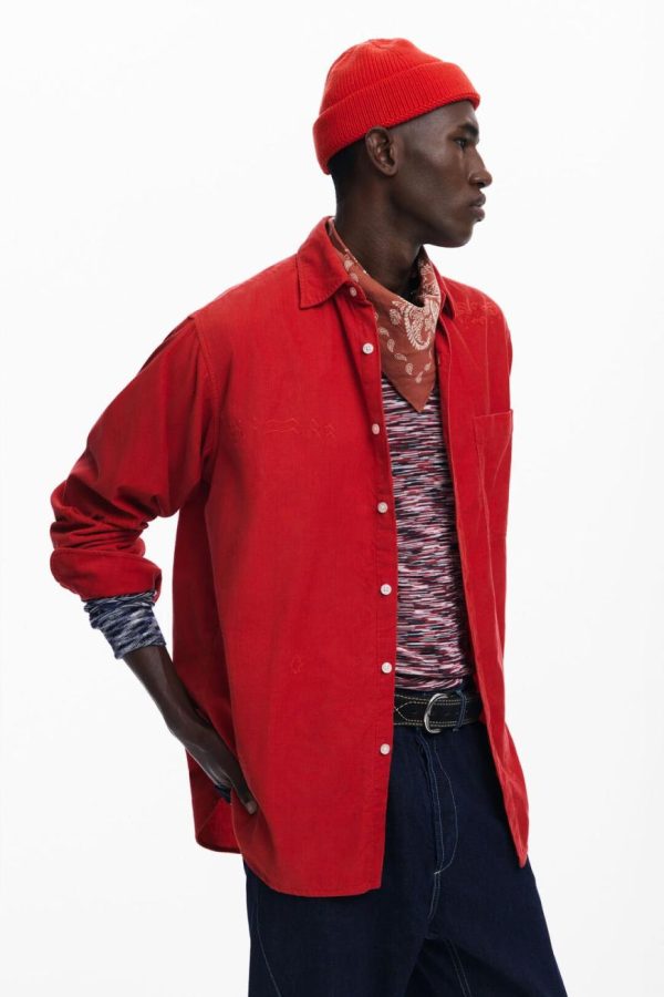 Elevate your casual wardrobe with this sophisticated long-sleeve shirt featuring subtle tonal embroidery and a practical front pocket. Crafted for everyday comfort and style.