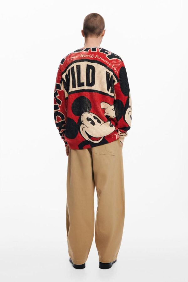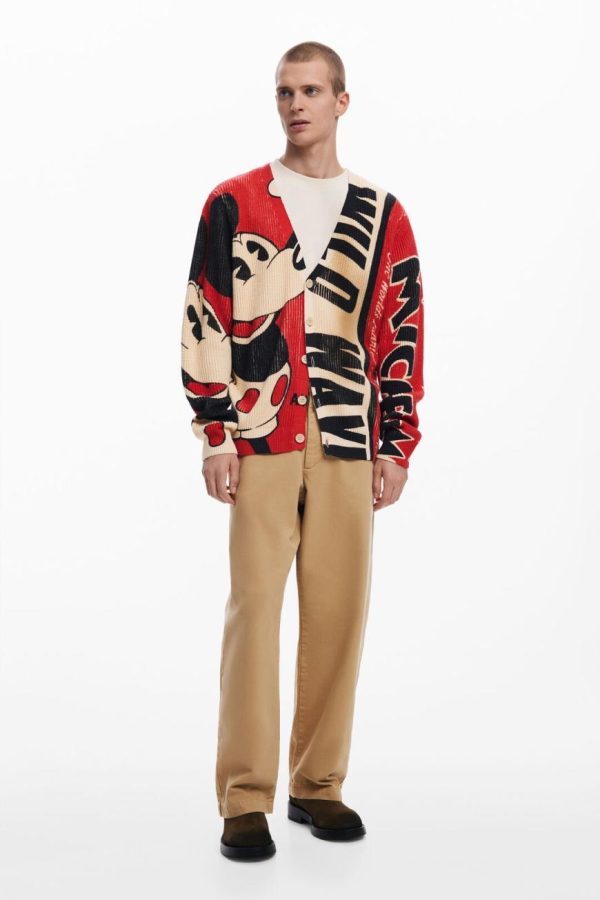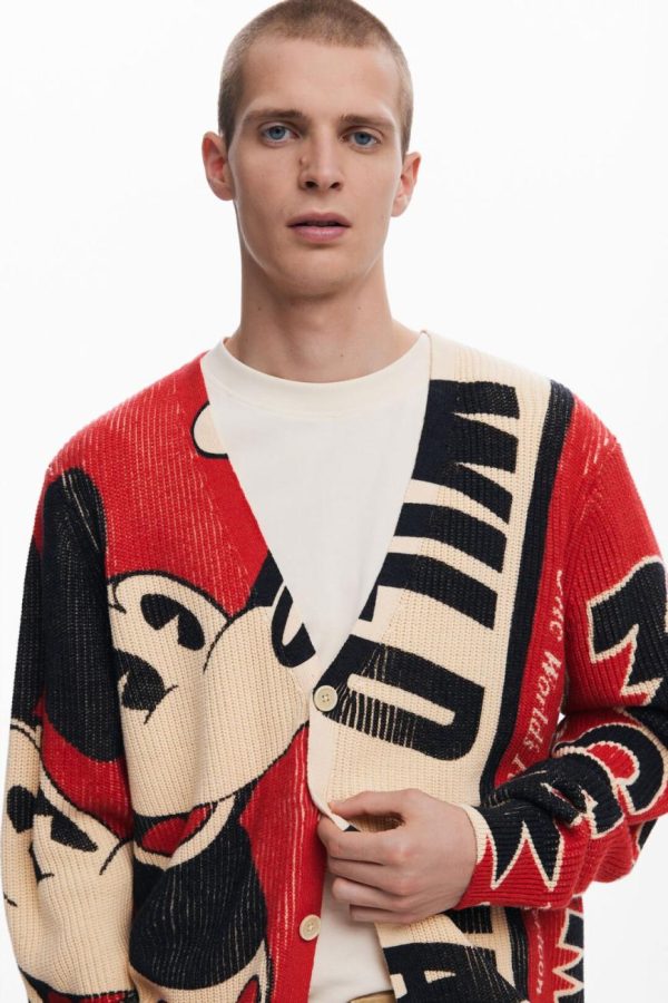 Loose-fitting cardigan, buttoned front, with V-neck and letter print and Mickey Mouse™.