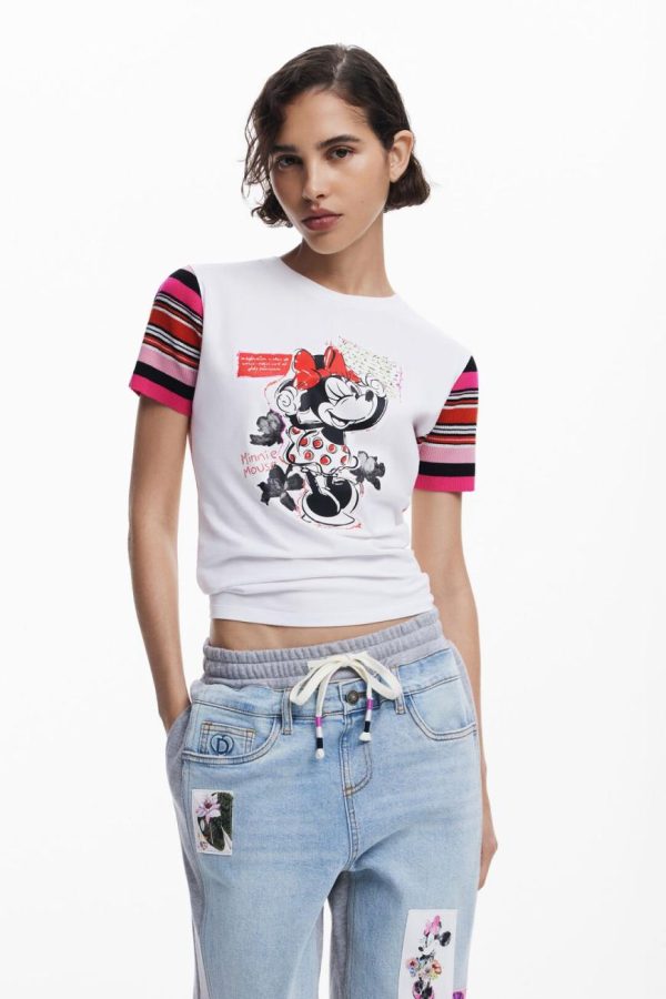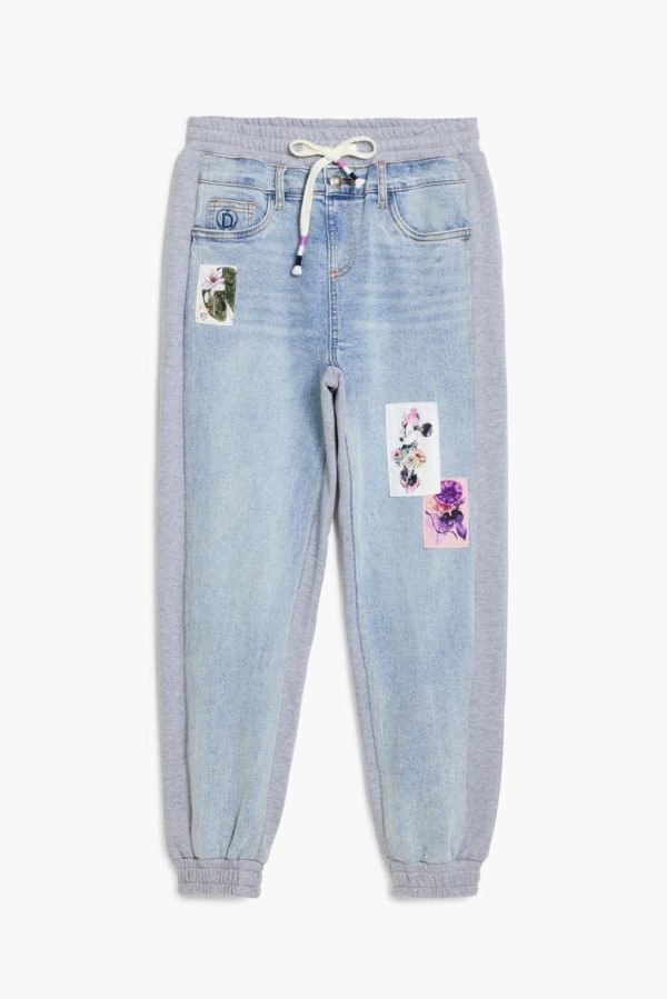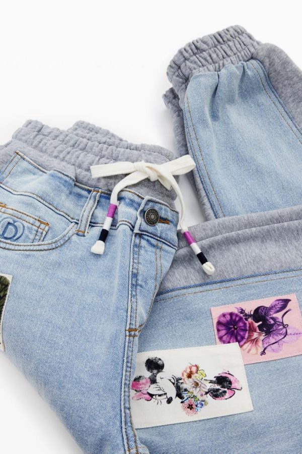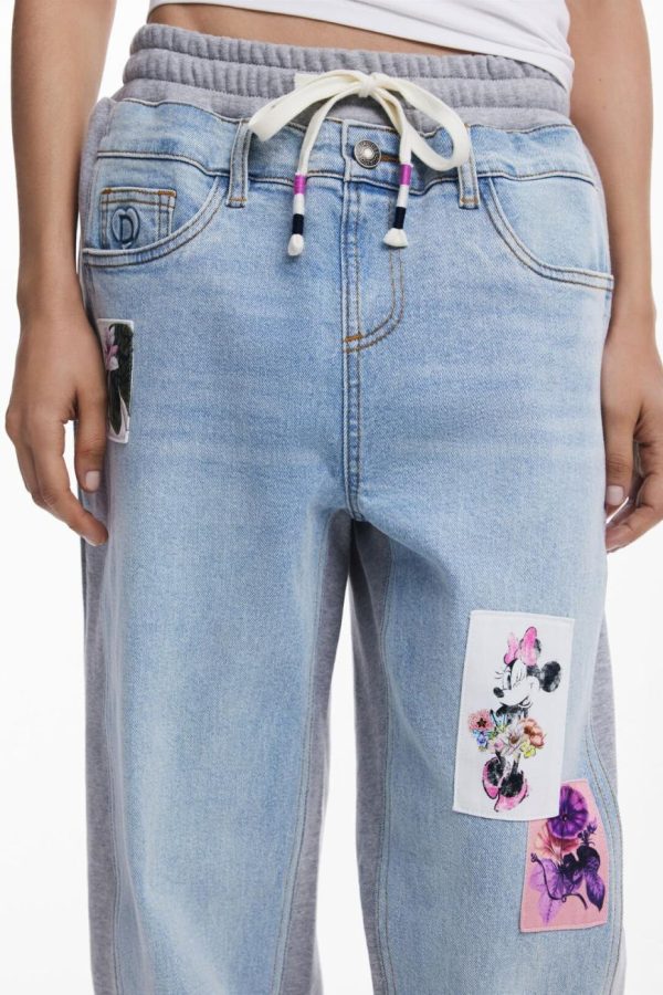 Jogger-style jeans half denim half sweatpants, with Minnie Mouse™ design on the front.