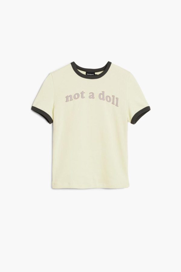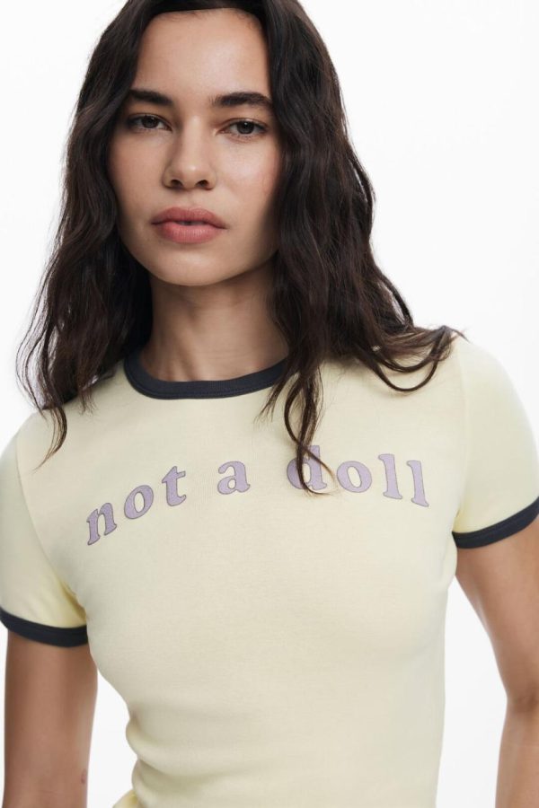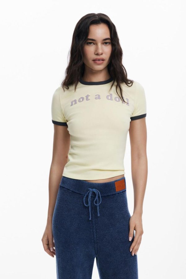 Discover this chic fitted short-sleeve T-shirt featuring a comfortable round neckline in a vibrant solid color, complete with an empowering message print on the chest that makes a statement.