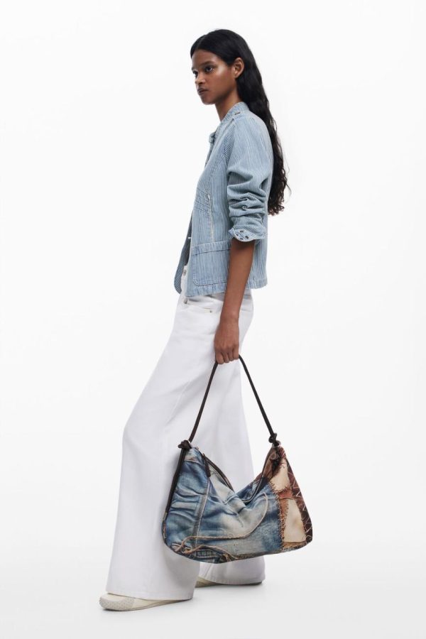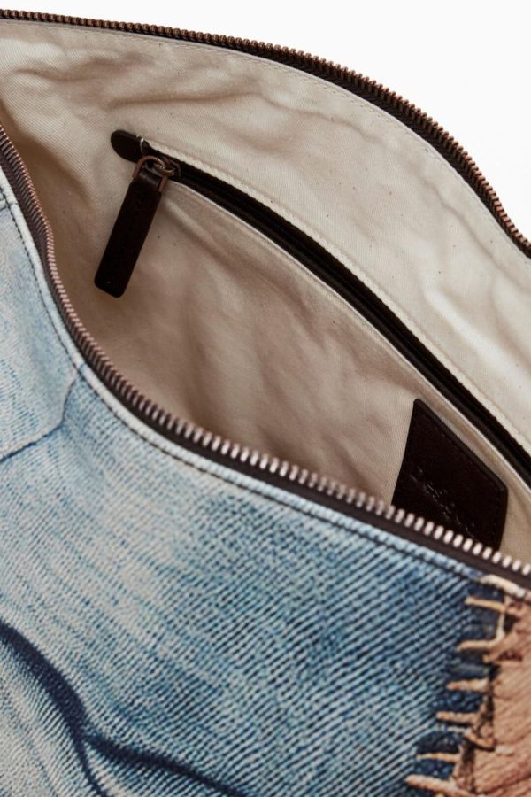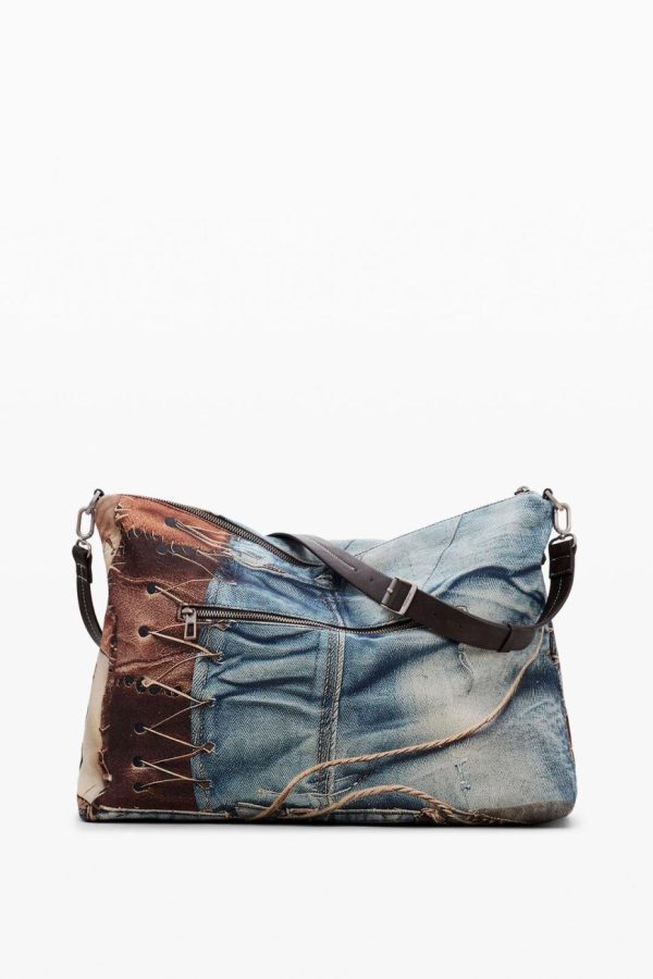 Make a bold statement with this eye-catching patchwork bag featuring artisanal braided detailing and a secure zipper closure for your essentials