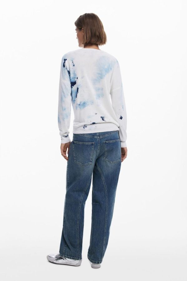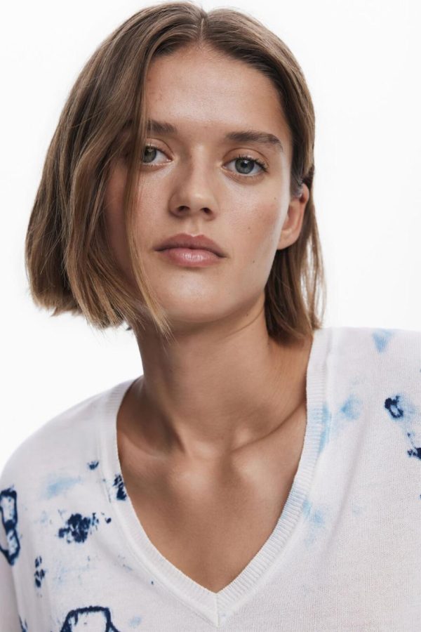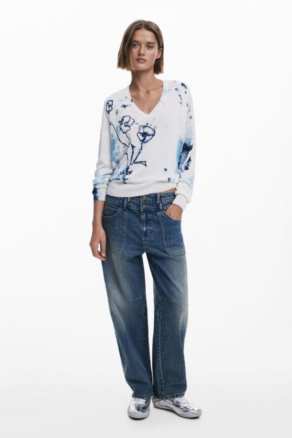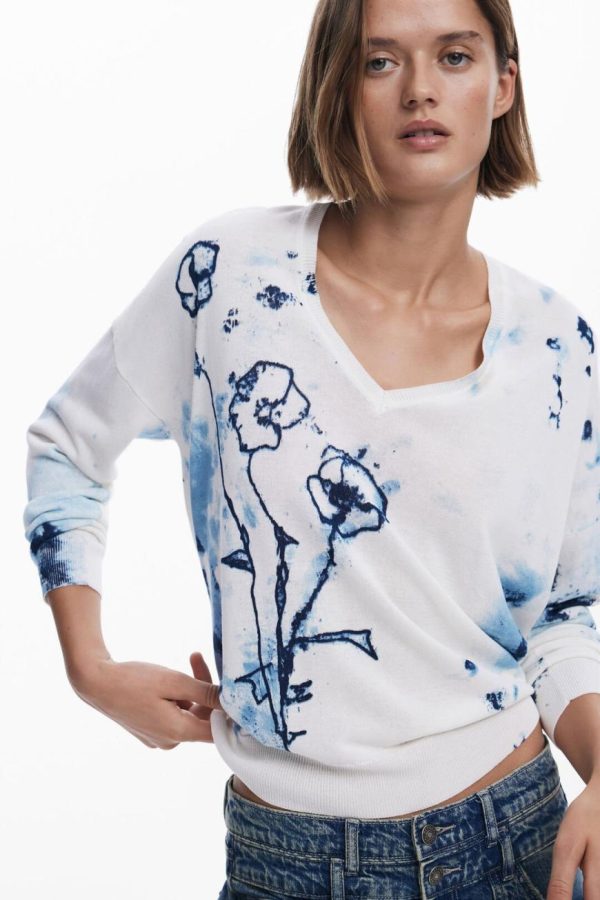 Elevate your casual wardrobe with this stunning long-sleeve V-neck sweater featuring a vibrant poppy design and artistic effect that makes a statement.