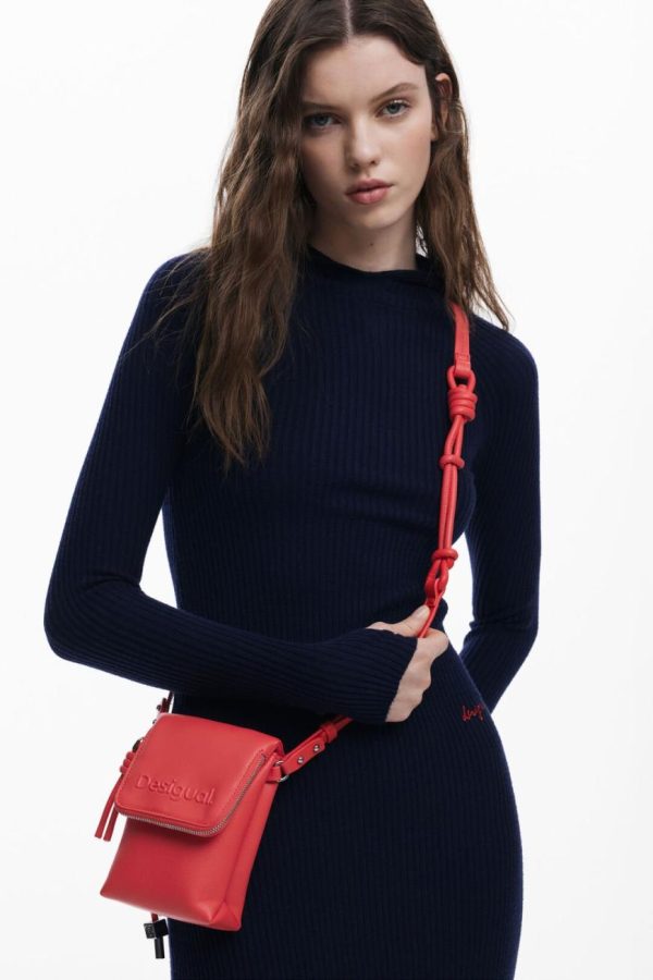 Elevate your everyday style with this chic faux leather mobile holder featuring an adjustable strap, secure zipper closure, and multiple organized interior compartments, all highlighted by a bold solid color 3D effect logo that makes a statement.