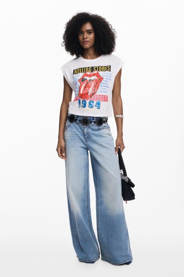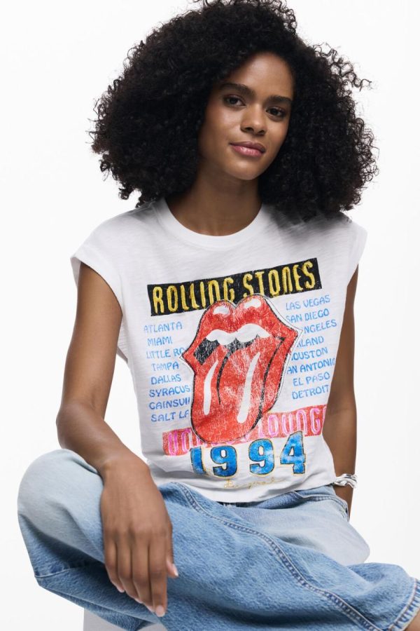 Sleeveless T-shirt with frayed hem stitching details and vintage-inspired Rolling Stones™ print.