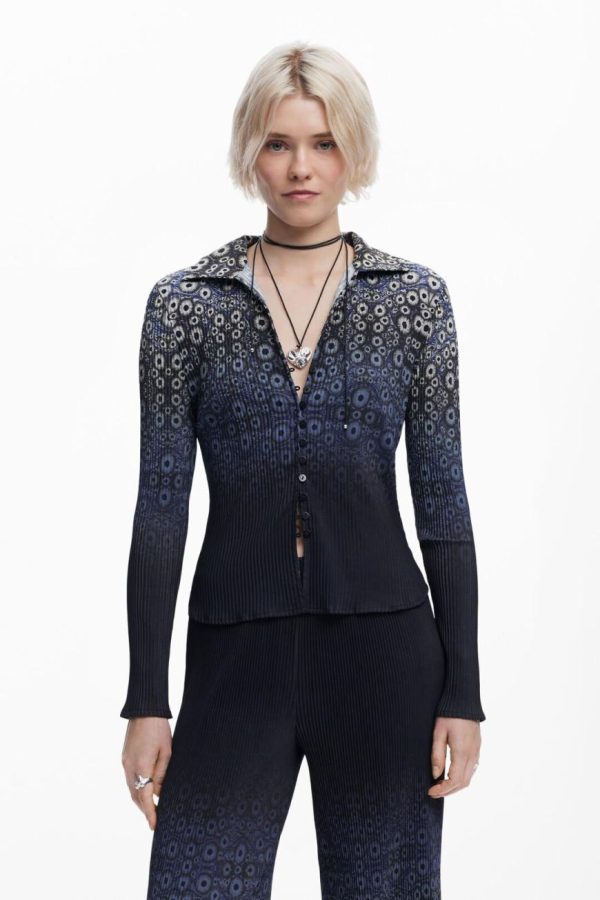 Long-sleeve shirt with cell print and gradient colors designed by Monsieur Christian Lacroix.
