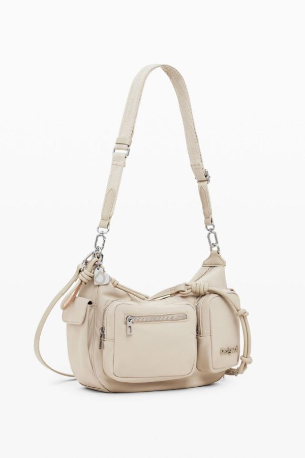 Shoulder bag with multiple exterior pockets and interchangeable handles