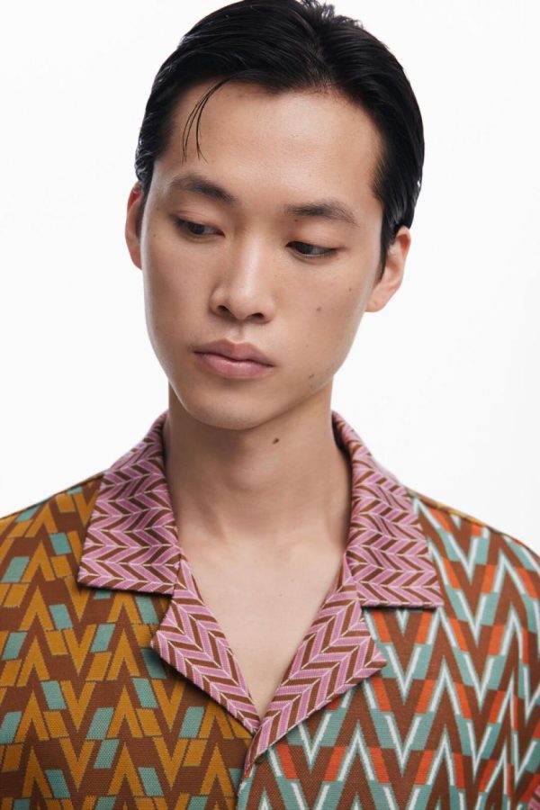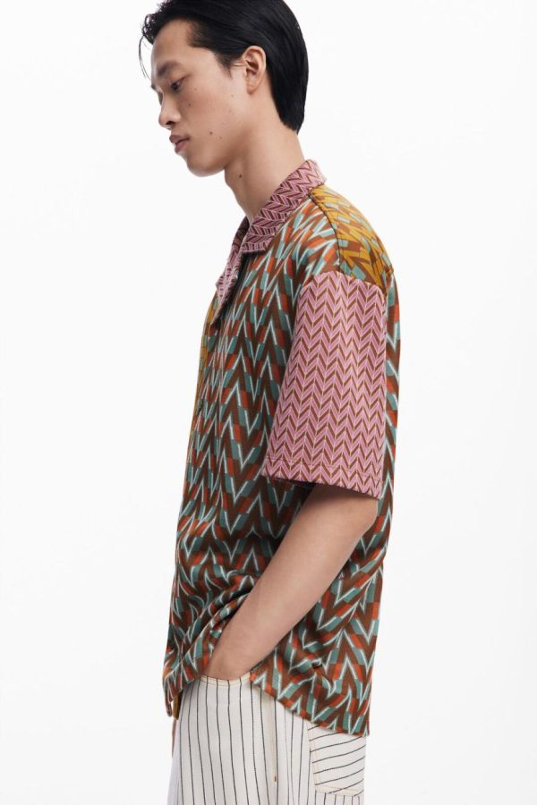 Short-sleeve Jacquard shirt with a combination of sixties print in different colors.