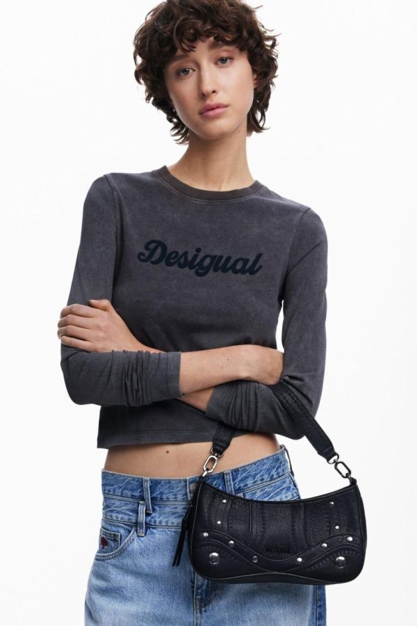Desigual Small Embroidered Faux Leather Bag Black | Women Crossbody Bags