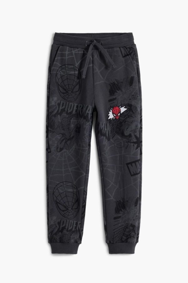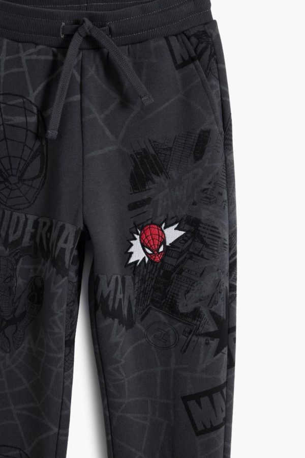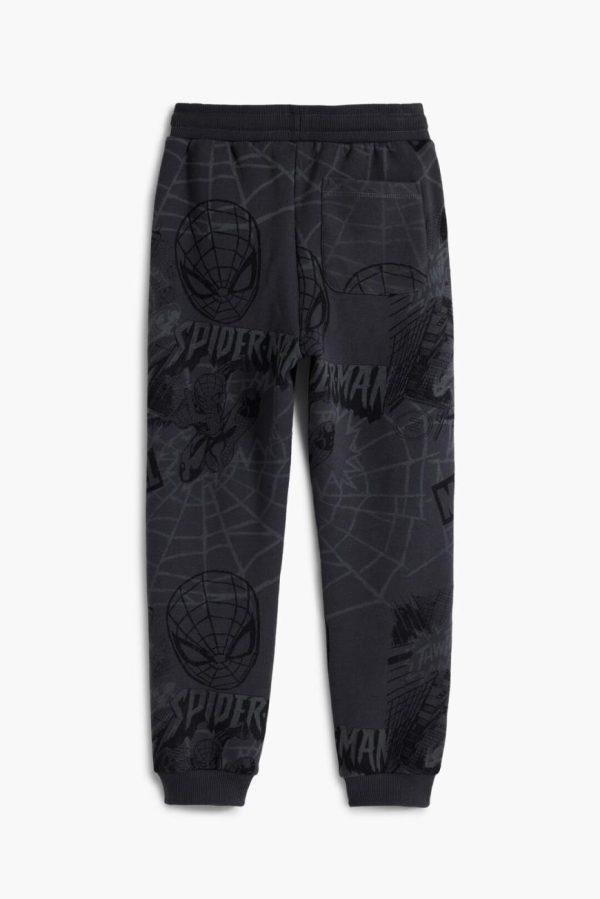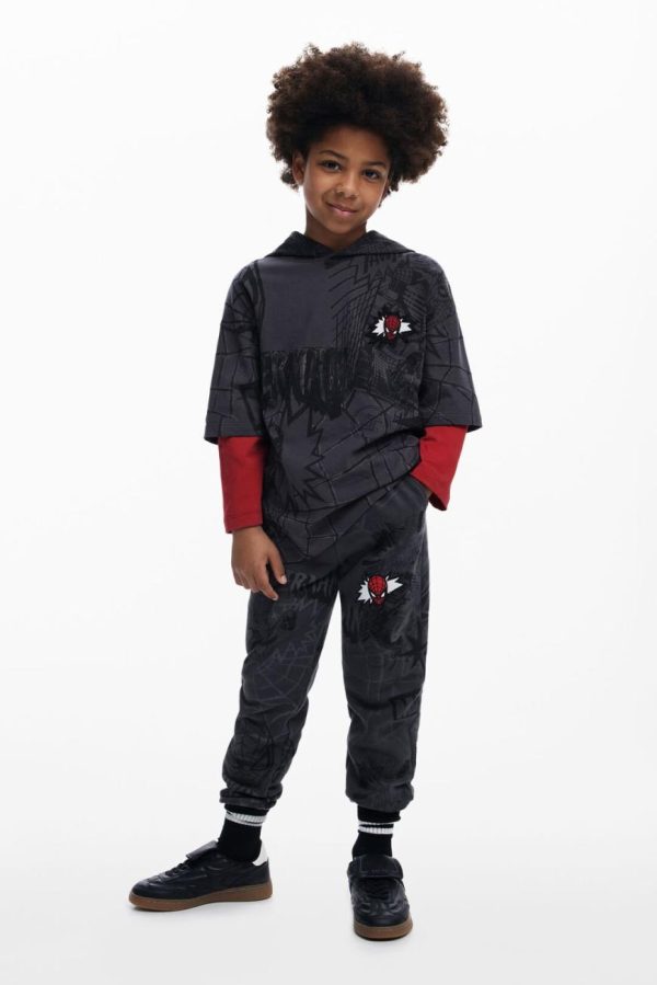 Long jogger-style pants, made of 100% cotton fabric, with elastic waistband and cuffs, side and back pockets, and Spiderman™ print.