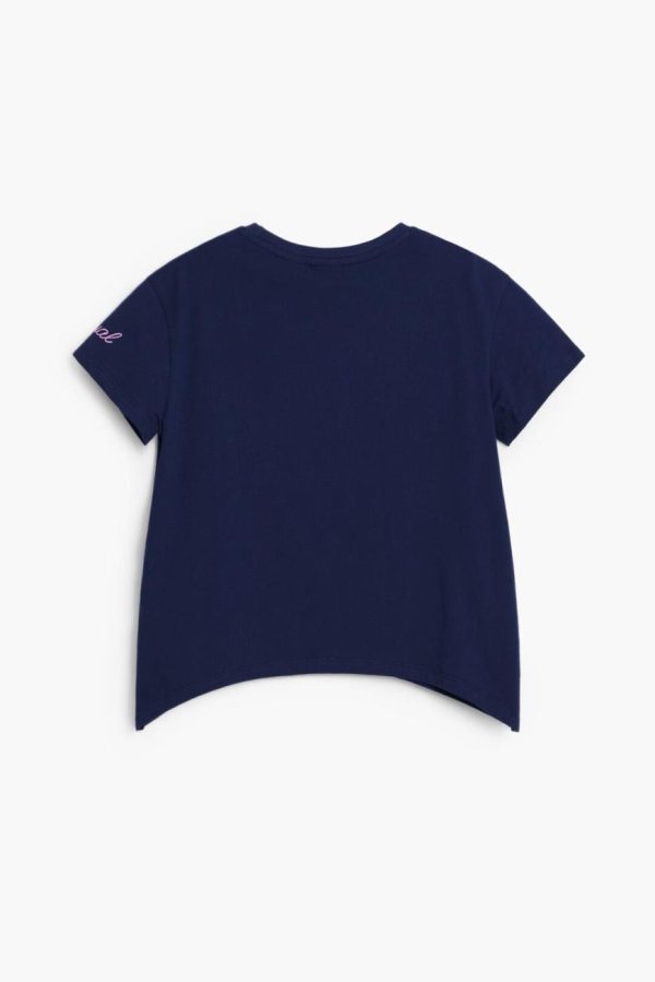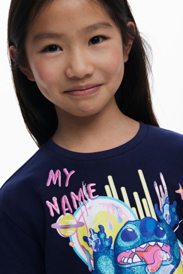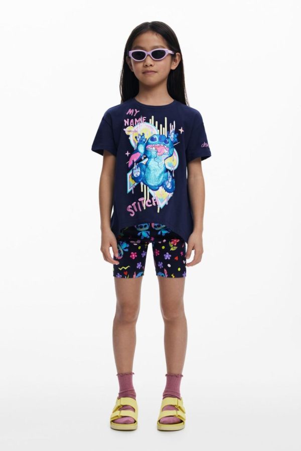Short-sleeve T-shirt with a round neck, featuring an asymmetrical hem with points and a print of Stitch, the Disney™ character.