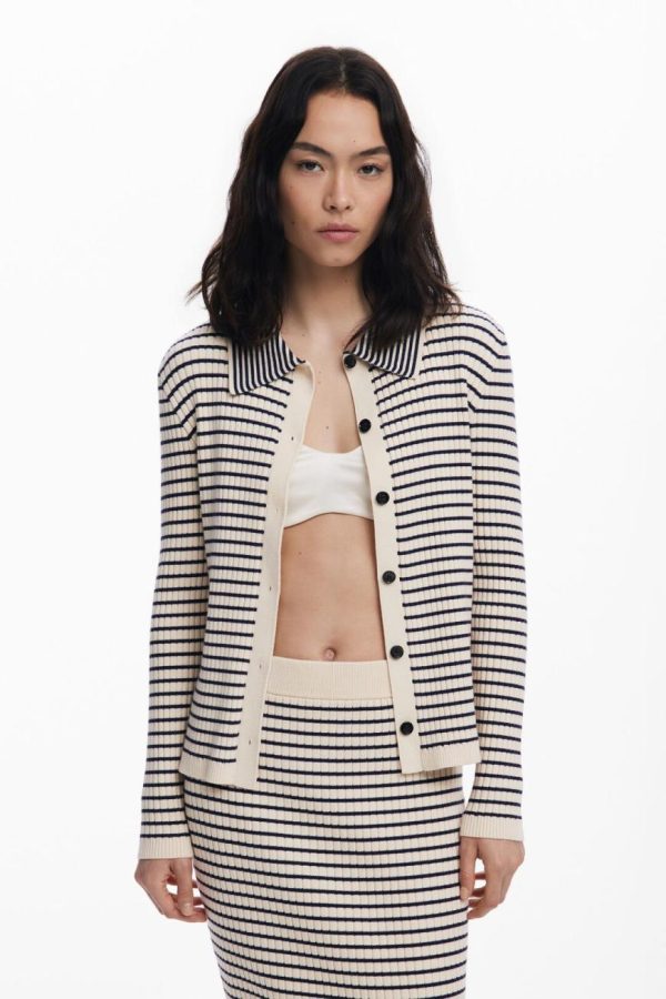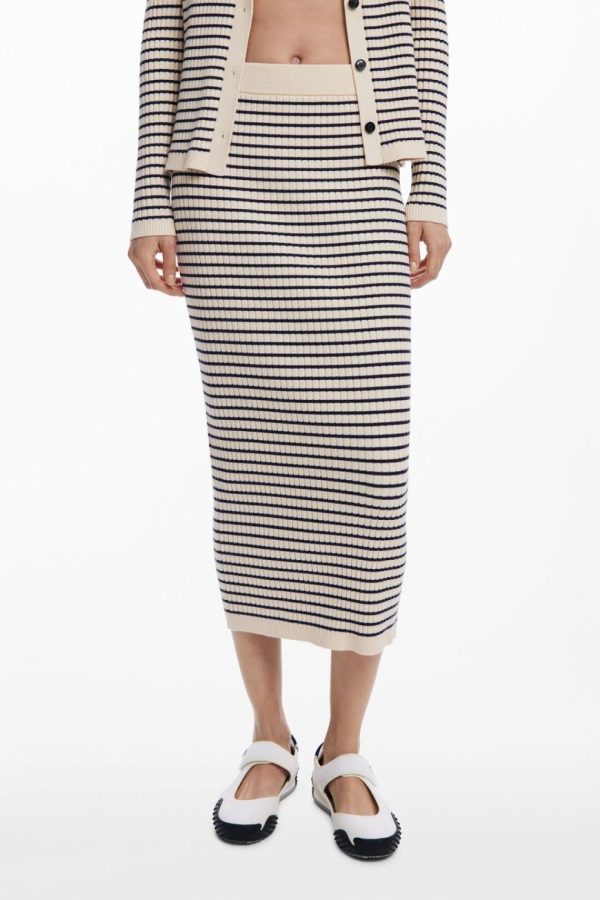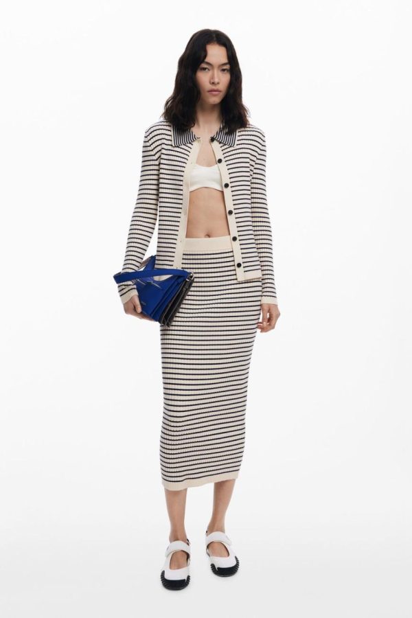 Desigual Striped Knit Midi Skirt White | Women Skirts And Shorts