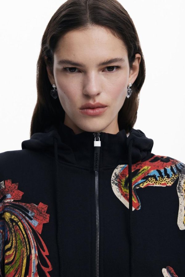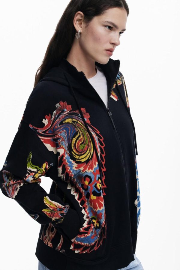 Long-sleeve hoodie with zipper closure, featuring a paisley print designed by Monsieur Christian Lacroix.