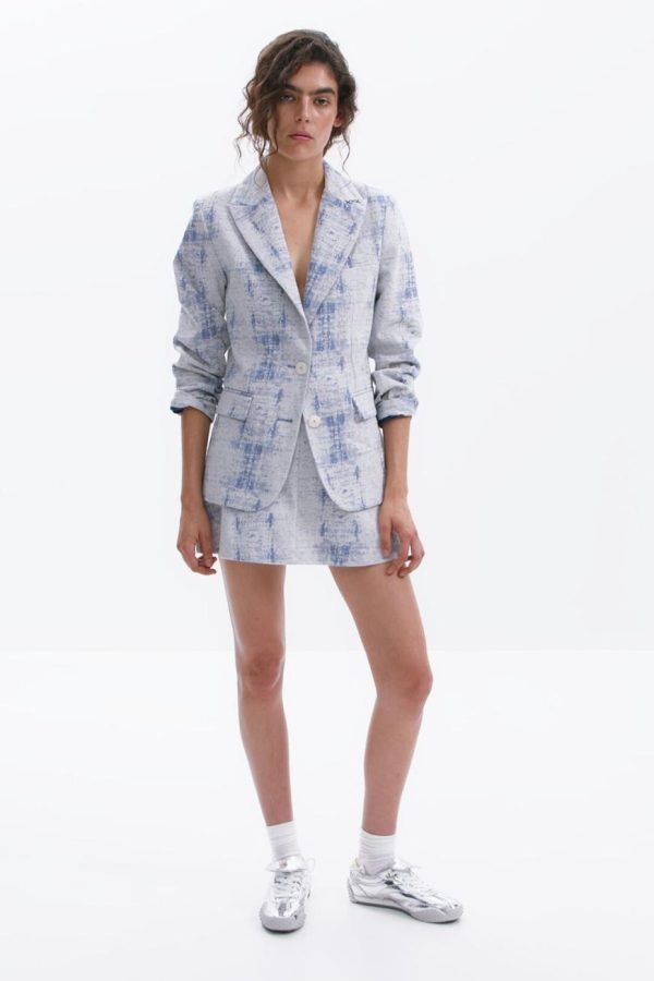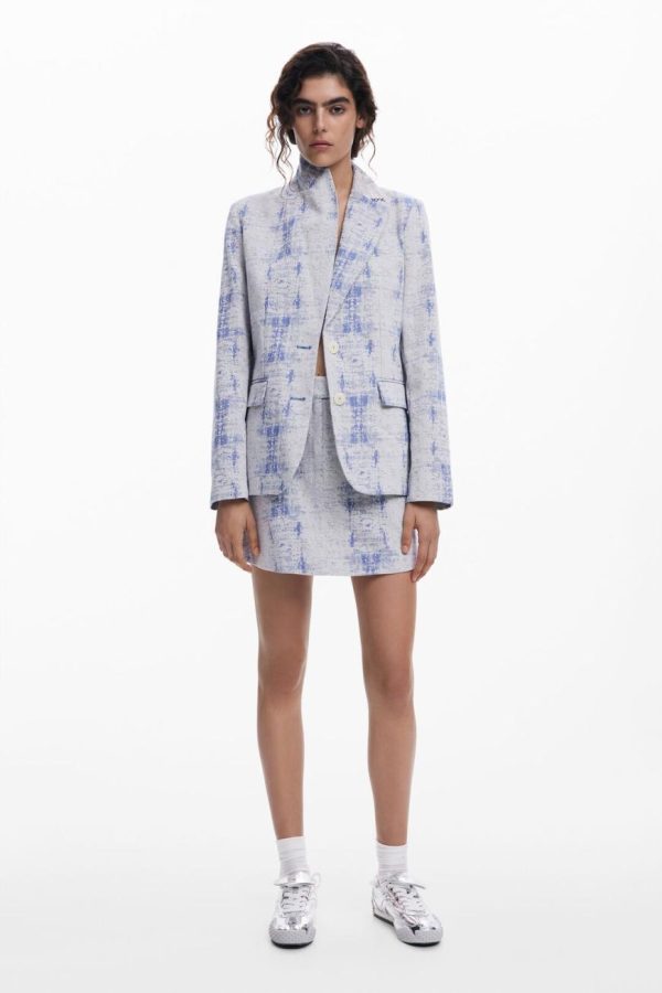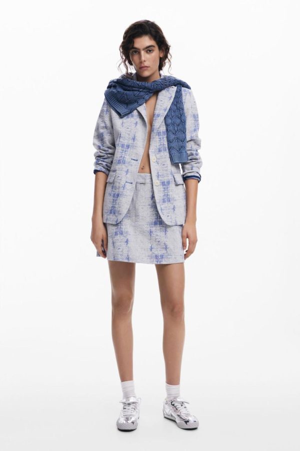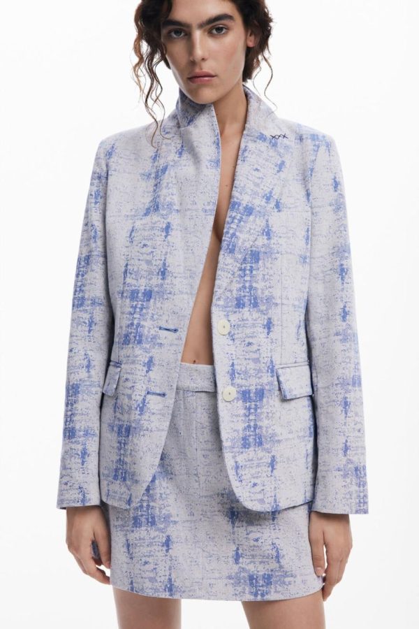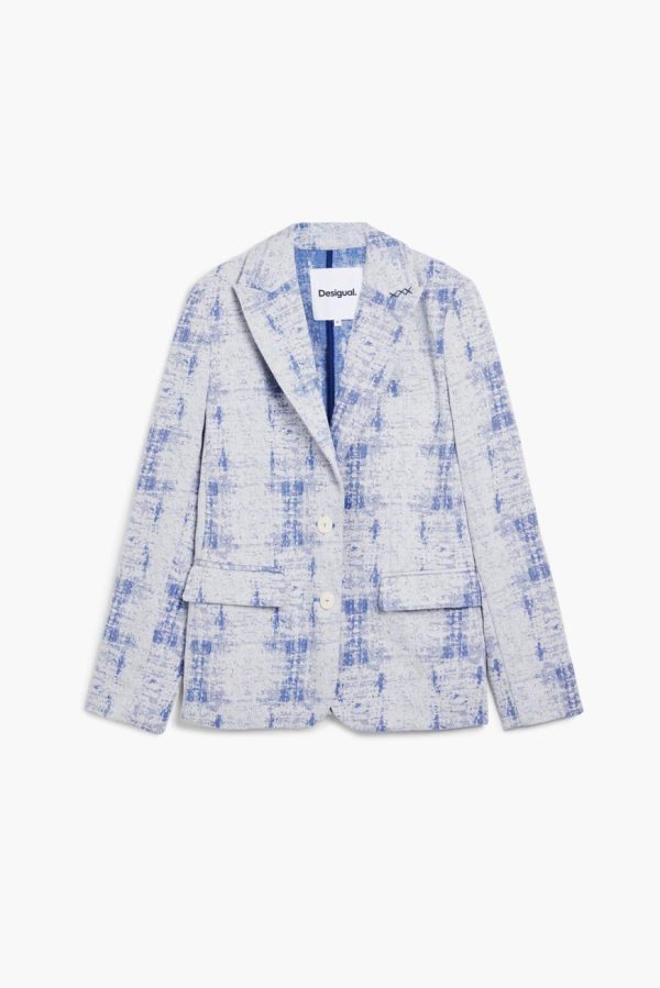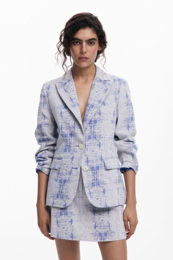 Classic-cut blazer with a worn-effect design, long sleeves, and button closure.