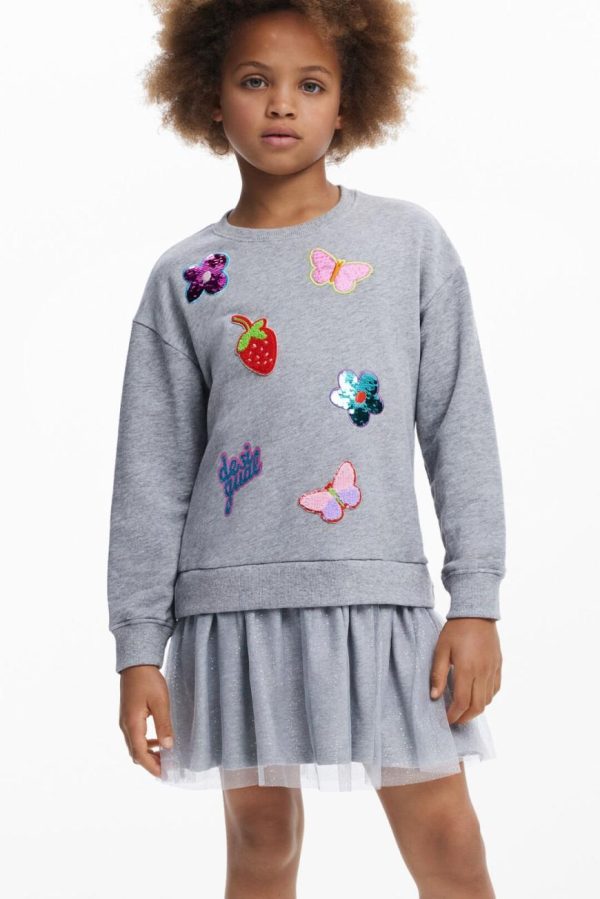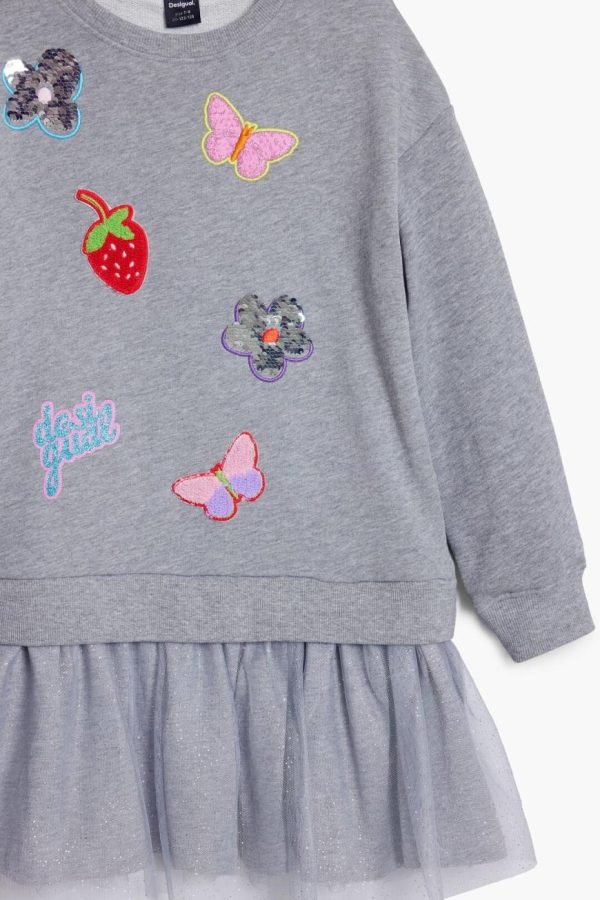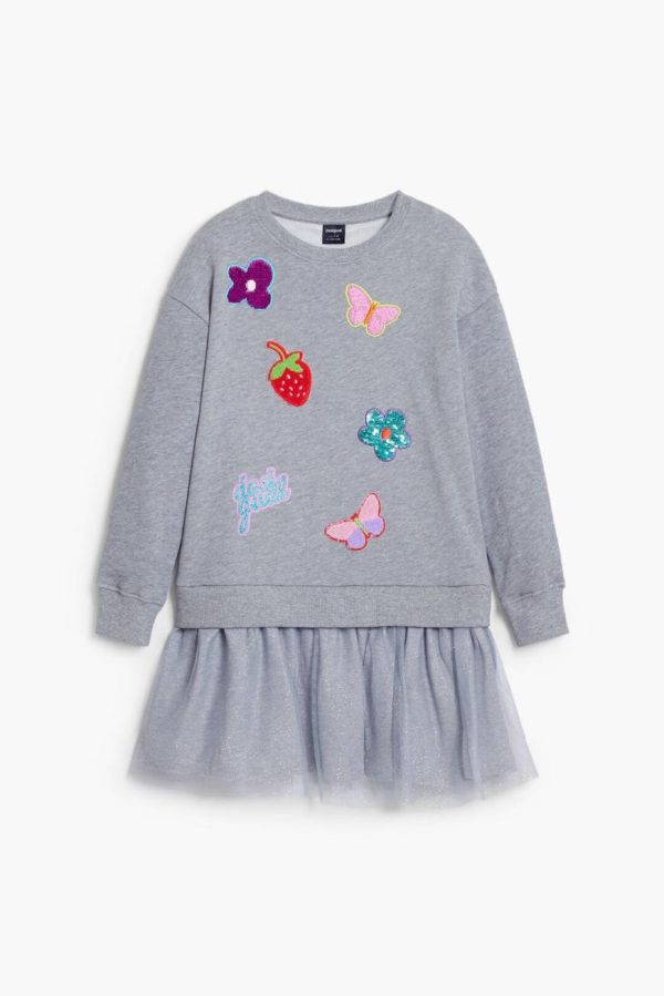 Desigual Tulle Skirt Dress With Figures Grey | Kids Dresses