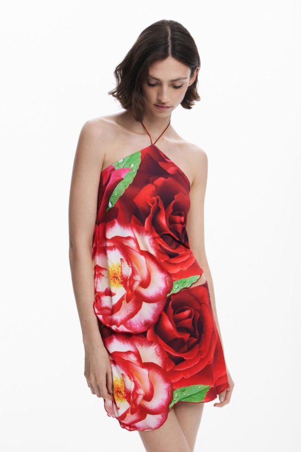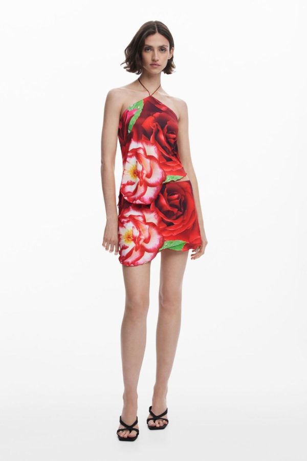 Mini fitted skirt with elastic waistband and floral print designed by Tyler McGillivary.