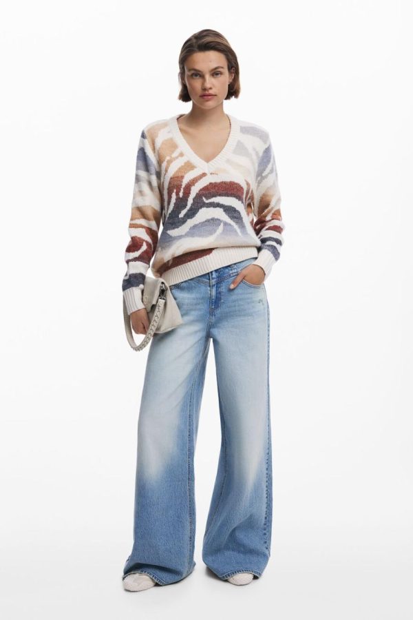 Desigual V-neck Zebra Sweater Materialfinishes | Women Sweaters