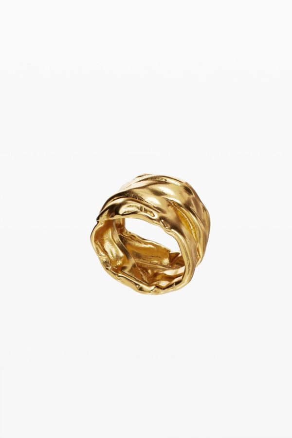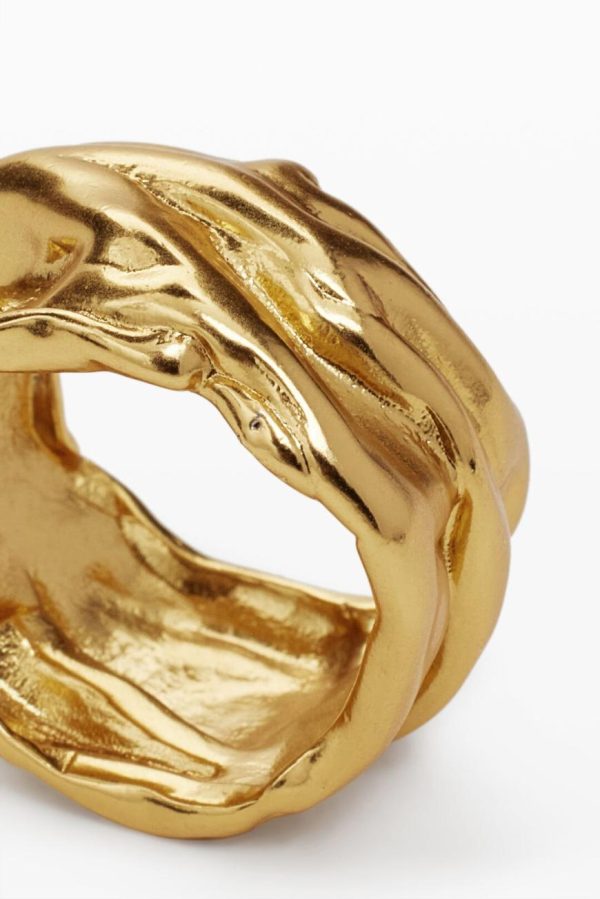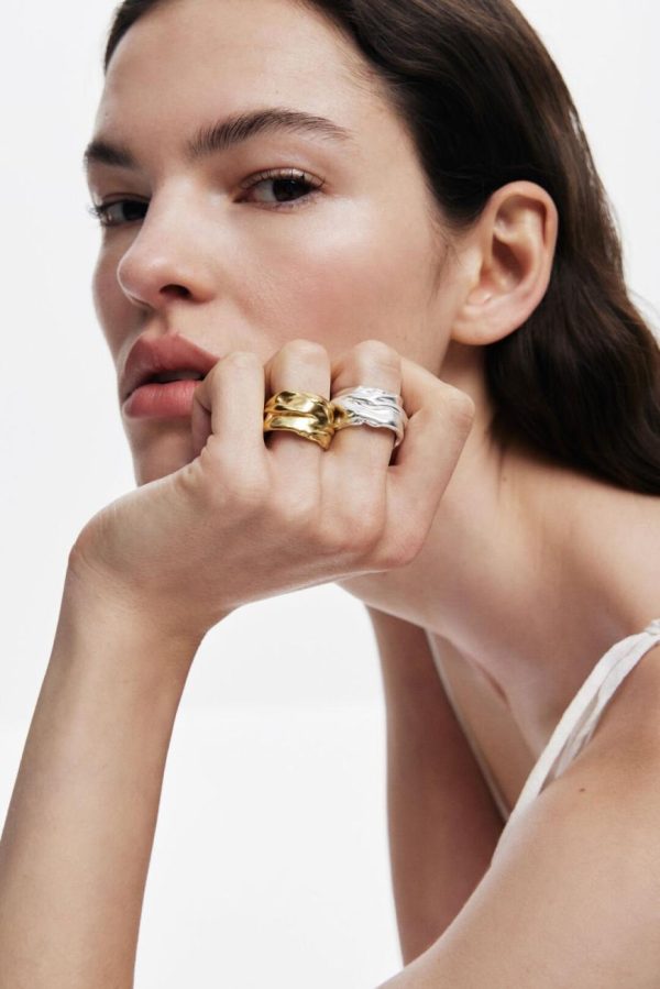 Ring with irregular wavy shapes in 1st Law gold of 3 micro inches and pressure closure and pearl detail. Zalio x Desigual collection; designed by Gala Meyer.